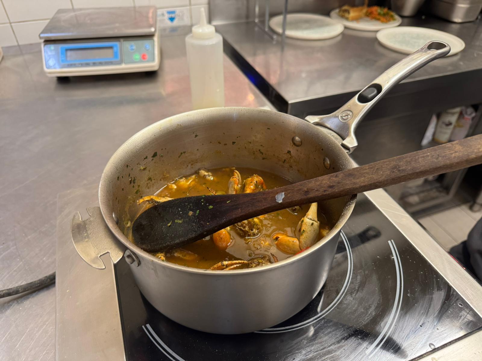 Il faut arriver de bon matin pour avoir le choix, ou même pour avoir le produit tout court, car les stocks sont limités. C'est la nature qui décide : quand il n'y en a plus, on ne peut pas en fabriquer. Mieux vaut donc venir tôt pour récupérer ce dont on a besoin et bien lancer sa journée. Les produits arrivent d'une fraîcheur irréprochable et sont faciles à travailler. Le grossiste qui les importe de Martinique assure un excellent suivi sanitaire, garantissant que tous les crabes ont été contrôlés. Nous allons en préparer une partie pour ce week-end de Pâques, tandis que l'autre sera conservée et nourrie jusqu'à la Pentecôte avant d'être cuisinée.