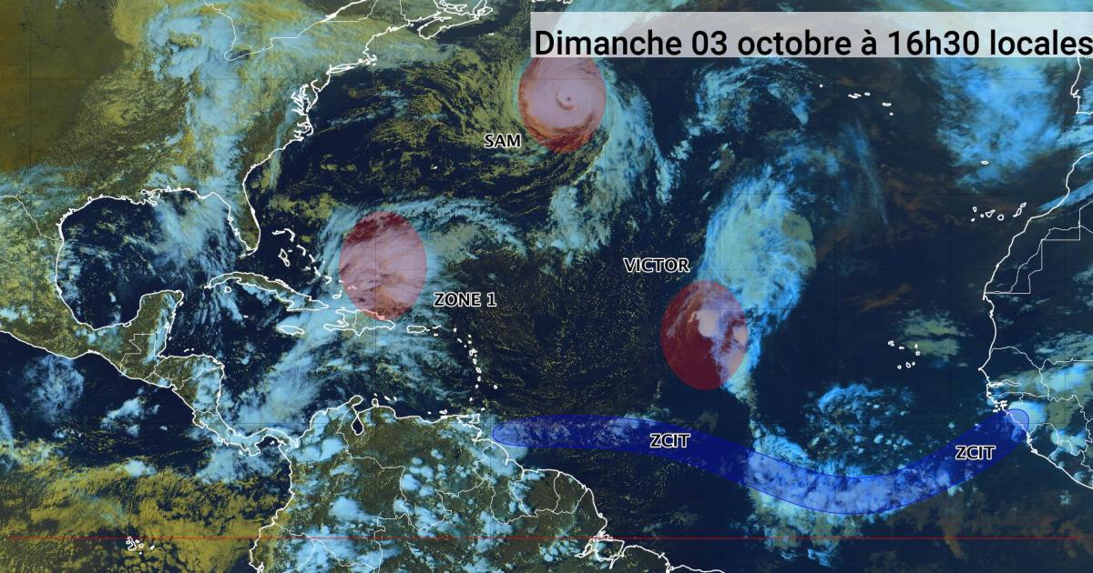 Ouragan de catégorie 2, Sam devrait quitter la zone intertropicale d'ici mardi. Victor, rétrogradé en dépression tropicale, devrait se dissiper dans les prochaines 36 heures.