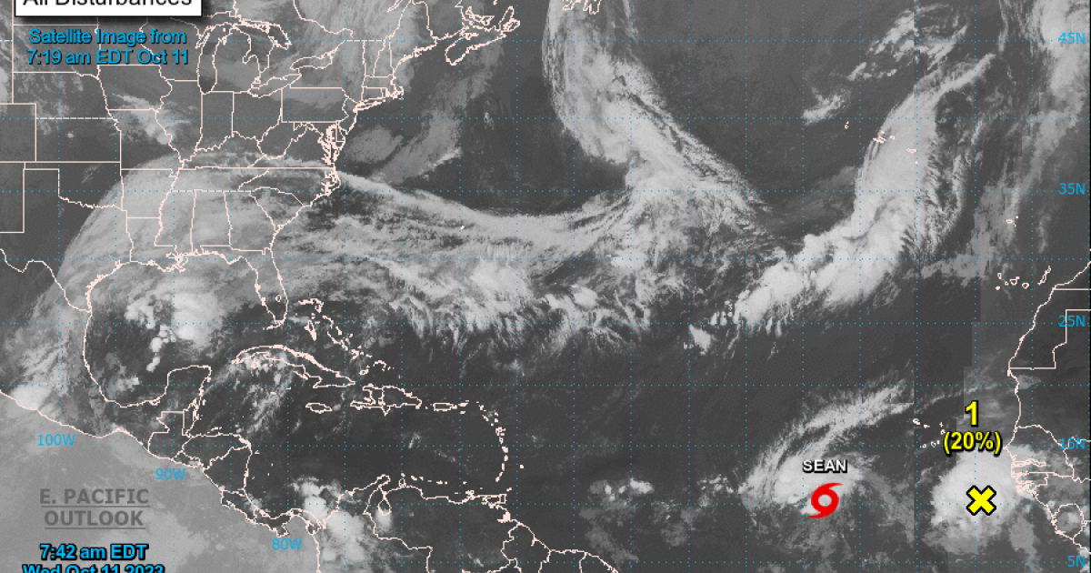8am EDT Wed 11th October -- Tropical Storm #Sean has formed out in the Eastern Tropical Atlantic from Invest #92L & we are watching another tropical wave located SSE of the Cabo Verde Islands with a low chance (🟡30%) of tropical cyclone development.https://t.co/DboWSR4Ct1 pic.twitter.com/G8lmLQGuI4