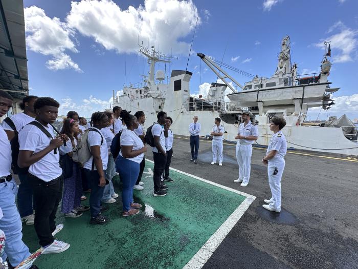 Un navire où l’on peut se sentir à l’étroit, mais qui ne laisse pas indifférente la classe de terminale de défense du Lycée Baimbridge qui a pu le visiter ce lundi.