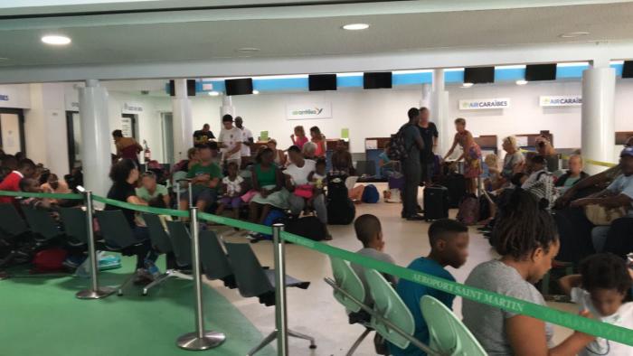 À l'aéroport de Grand Case, les candidats à l'évacuation attendent leur tour