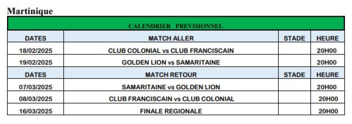 L’édition 2025 promet d’être un moment fort du football de la zone Antilles Guyane. Le calendrier prévoit des matchs clés dès le 18 février entre le Club Colonial et le Club Franciscain en Martinique ou encore l’affrontement entre le Sporting Club et le CS Moulien en Guadeloupe.