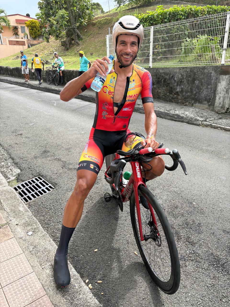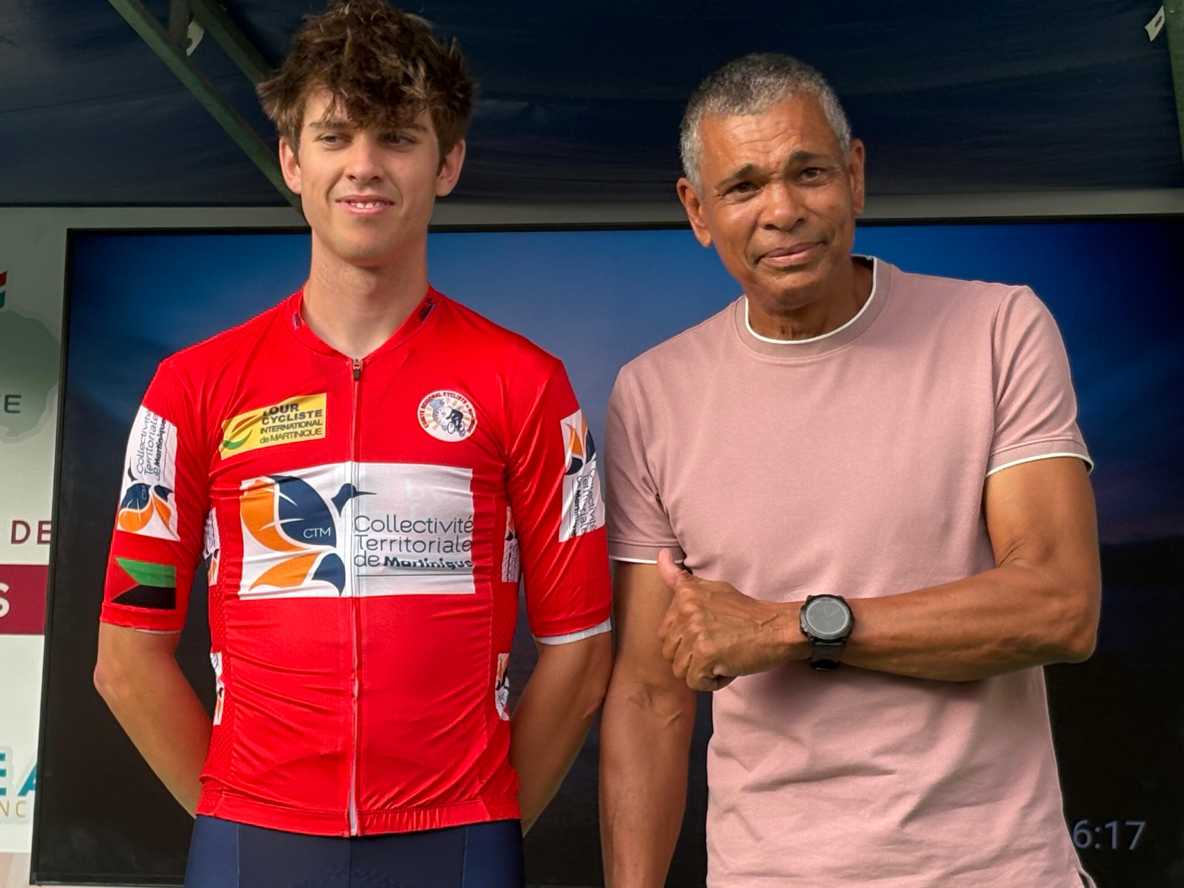 Lukas Balginder, de l'UCH, s’empare du maillot Jaune ce vendredi, après sa victoire lors du prologue du Tour Cycliste de Martinique 2025, à Ducos.