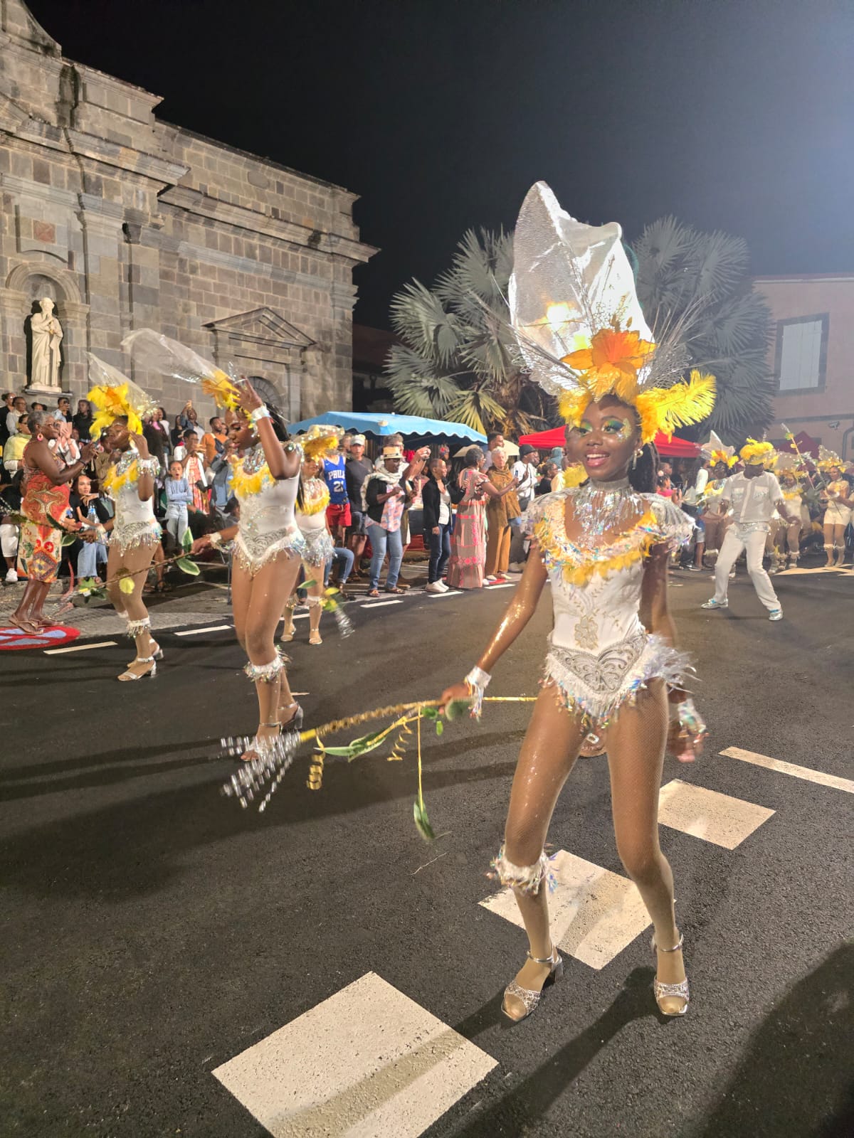 Sur le parcours, il y a beaucoup de monde. C'est quand même magnifique. Les groupes ont fait un beau travail. Nous-même, on a mis le maximum pour surprendre et j'espère que le résultat est là. Il y avait plus de 400, 500 personnes qui défilaient en ville avec des marchandes. Donc c'était un beau défilé.
