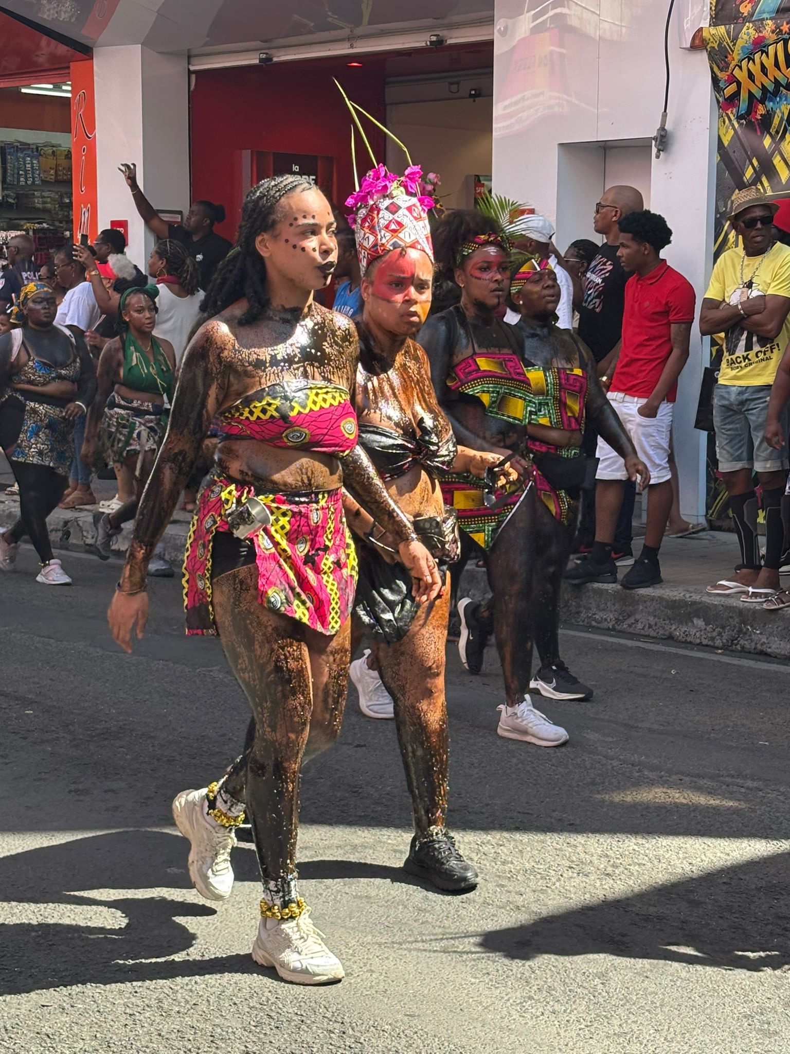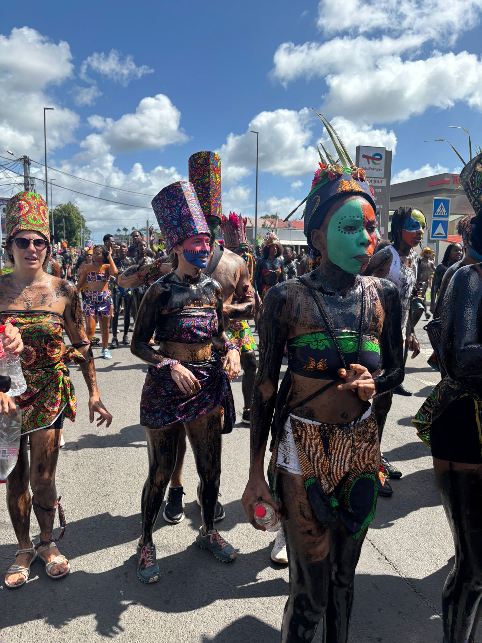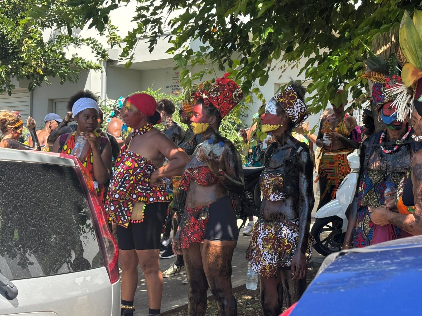 Ce samedi 14 février, les rues se sont animées au passage du déboulé Kongo Karayib. Dans une ambiance survoltée, des milliers de participants ont défilé au son des tambours et des conques de lambis, arborant fièrement leur peau recouverte de gwo siwo.