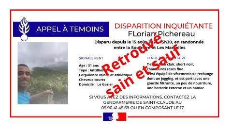 Florian Pichereau était porté disparu entre le massif de la Soufrière et les Mamelles depuis vendredi après-midi (15 août)...