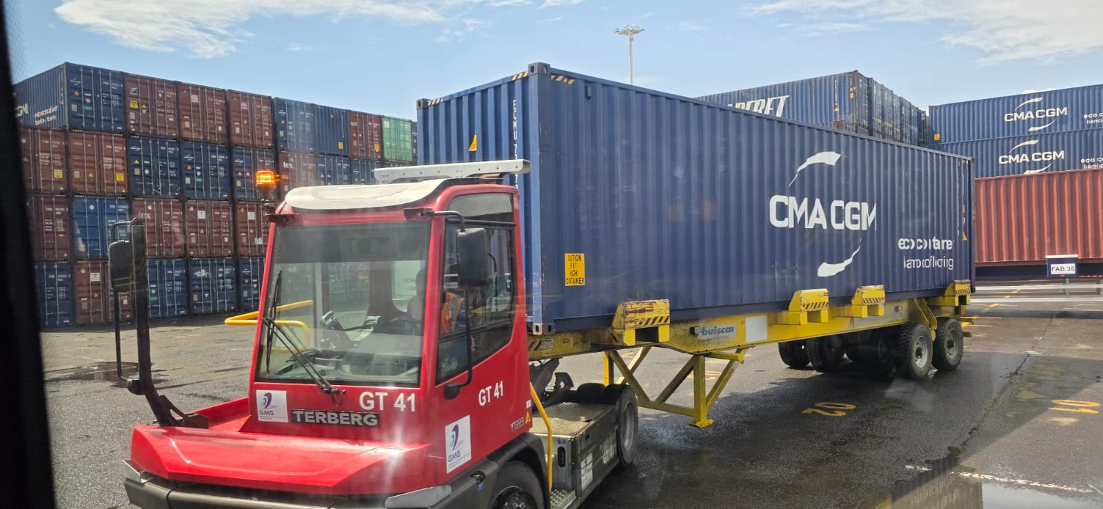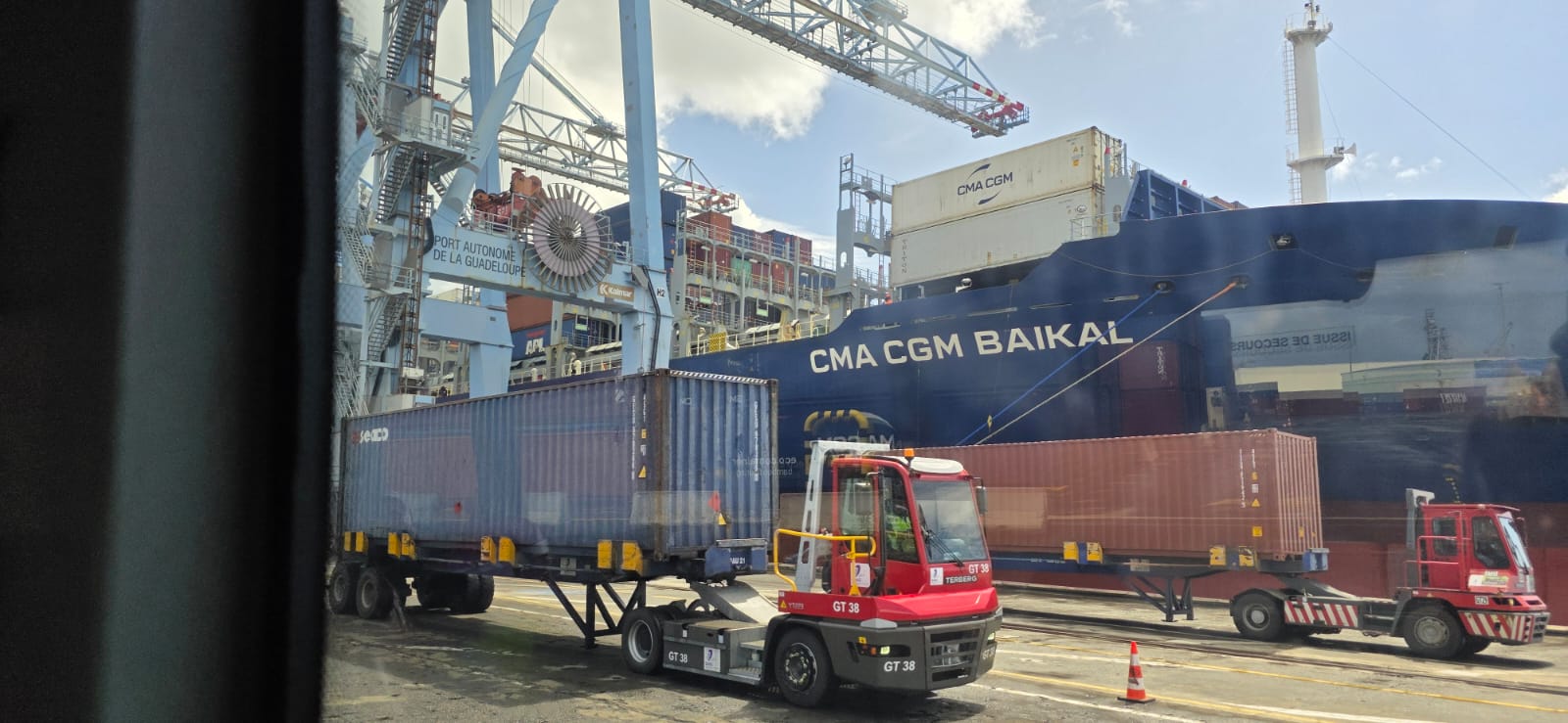 Les enjeux de ce nouveau service représentent une nouvelle opportunité pour l’économie guadeloupéenne. Un moyen de visiter le terminal et de faire la visite à bord du CMA-CGM BAIKAL.