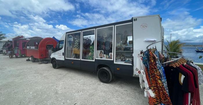 En Guadeloupe, culturellement, on a des roulottes sur le bord des routes. On s'est dit pourquoi pas les mettre en avant et créer un événement. Dans la définition du dictionnaire, roulotte correspond aux marchands qu'on retrouve au bord des routes. On aime bien le nom, c'est pour ça qu'on l'a conservé. On met en valeur la street food, puisque quand on parle de roulotte c'est ce qu'on a en tête, mais pas seulement. Il y a d'autres types de services comme les massages qui sont présents. Ce magasin de vêtements qui est vitré, qui est magnifique. On voulait montrer la diversité de ces roulottes et c’est chose faite.