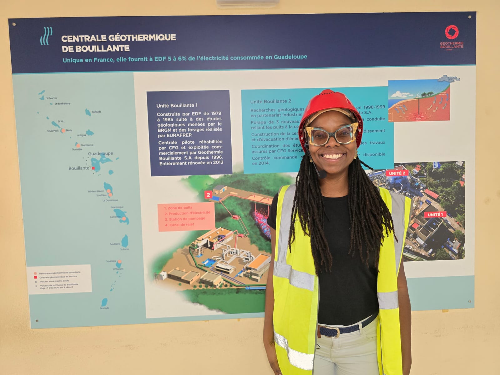 La centrale géothermique de Bouillante est très prisée. Il y a, à peu près, une centaine de visites par an, de scolaires majoritairement, mais également du tout public et des professionnels qui souhaitent découvrir les installations et qui font donc appel à Caraïbes Factory pour les guider. La structure, je l'ai créée il y a huit ans parce que j'ai vu qu'il y avait un réel besoin de découvrir notre économie. Le tourisme industriel se développe de plus en plus. Cette envie de découvrir les entreprises de l'intérieur, de pénétrer dans les coulisses. J'ai eu envie de porter ma pierre à l'édifice en permettant à nos jeunes également de découvrir de nouveaux métiers, de susciter des vocations. C'est un peu tout ça qui m'a conduite à créer cette société qui travaille aujourd'hui avec une vingtaine d'entreprises. Elles nous font confiance pour guider tous types de publics à l'intérieur de leurs installations pour découvrir ce qu’elles font.