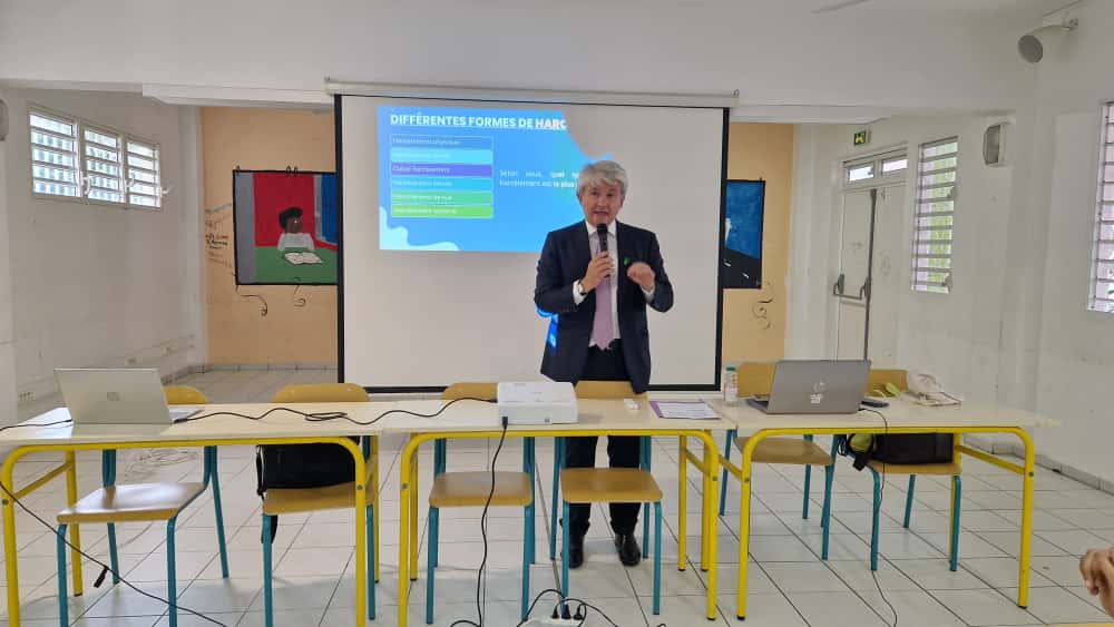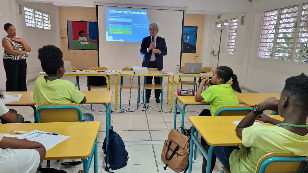 C'est le seul collège de Guadeloupe continental qui est certifié au niveau 3. On a un projet national qui s'appelle le projet Phare et on a uniquement deux établissements dans toute la région académique certifié au niveau 3, celui-ci et l'autre à Saint-Martin, le collège Mont des Accords. Ça veut dire qu'ils ont mis en place toutes les actions qui sont prévues pour lutter contre le harcèlement. Ça va de la sensibilisation, aux ateliers et aussi à l'engagement des parents, qui doivent être vraiment partie prenante dans la lutte contre le harcèlement.
