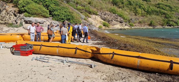 L'échouage des sargasses, c'est compliqué. C'est coûteux en termes de collecte, en termes de ramassage, en termes de gestion. Pour l'instant, on ne sait pas vraiment quoi en faire, comment les recycler, comment les valoriser. La meilleure solution, c'est d'éviter les échouages. D'où l'idée, effectivement, de mettre en place des barrages, déjà déployés sur plusieurs sites, sur Capesterre-de-Marie-Galante, sur Petit-Bourg. Ici, sur Terre-de-Haut, on est depuis deux ans en phase expérimentale avec la ville. On prend l'exemple de Capesterre. On a fait des tentatives, ça a plus ou moins bien marché, mais on ne baisse pas les bras et on continue à travailler sur ce projet de barrage pour l'améliorer, etc... On est dans des phases de test. C'est compliqué parce que ça suppose des études de courantologie, la connaissance de la mer, de l'état de la mer…