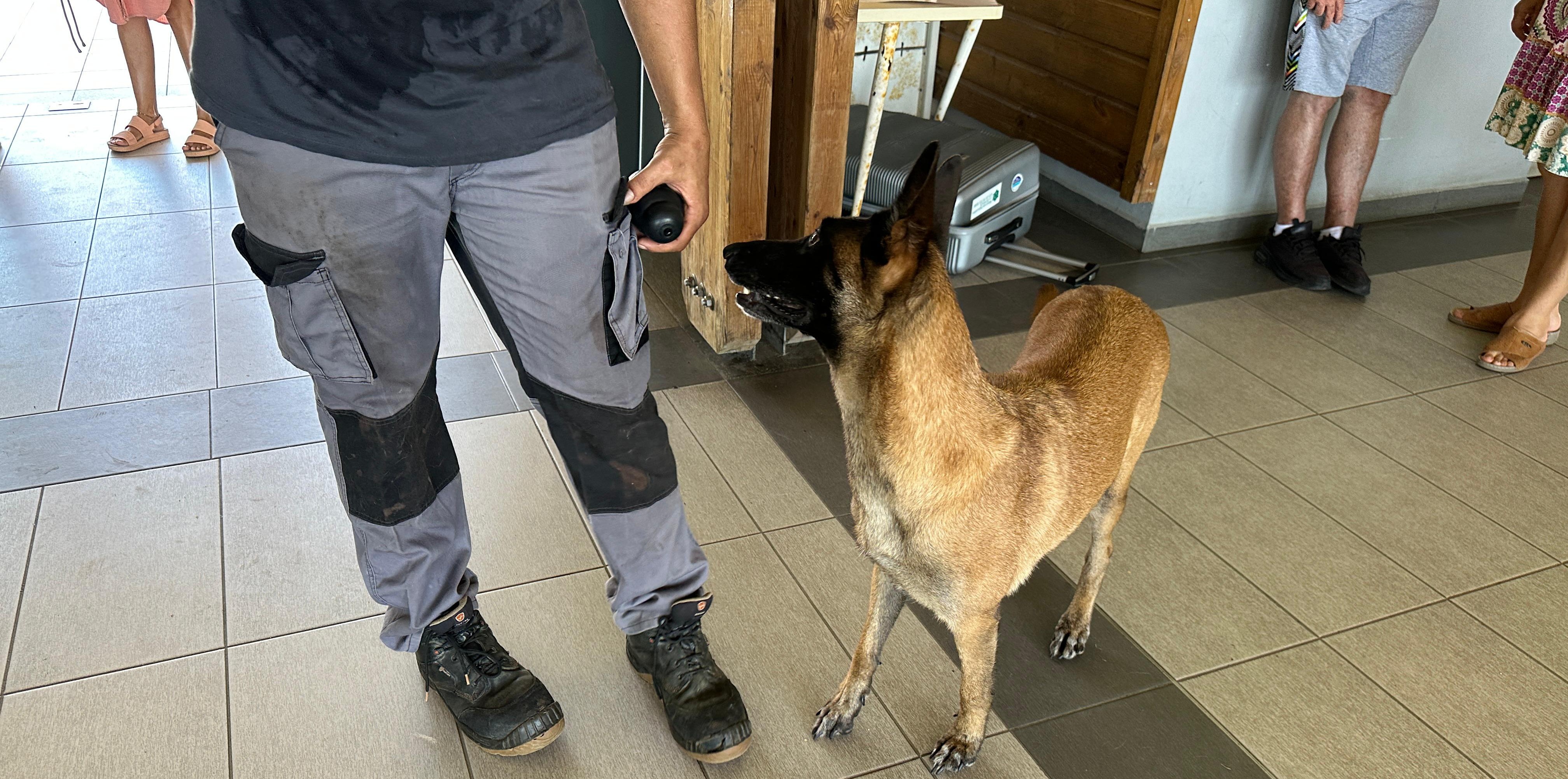 Nos chiens ont été tous formés à la détection. Là, vous avez Raya, notre chienne sélectionnée.
