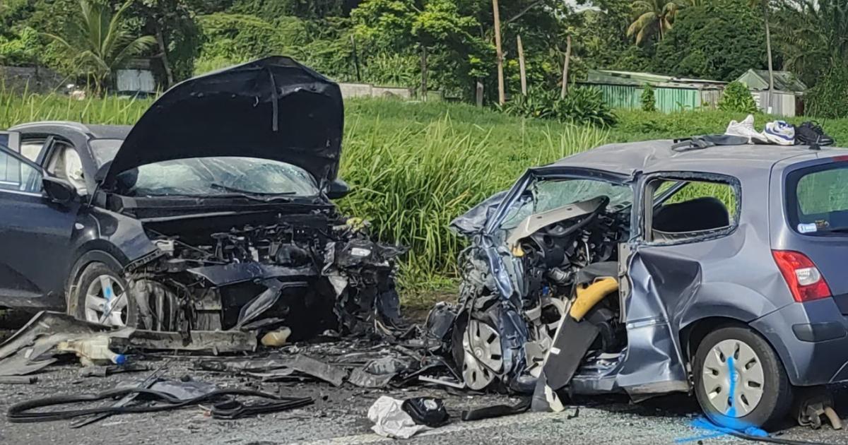 Selon nos informations, c’est la Twingo avec ses 5 occupants qui circulait vers le Lamentin, qui se serait on ne sait pour quelle raison, retrouvée sur la voie opposée. Frappant ainsi de plein fouet la voiture venant en face.
