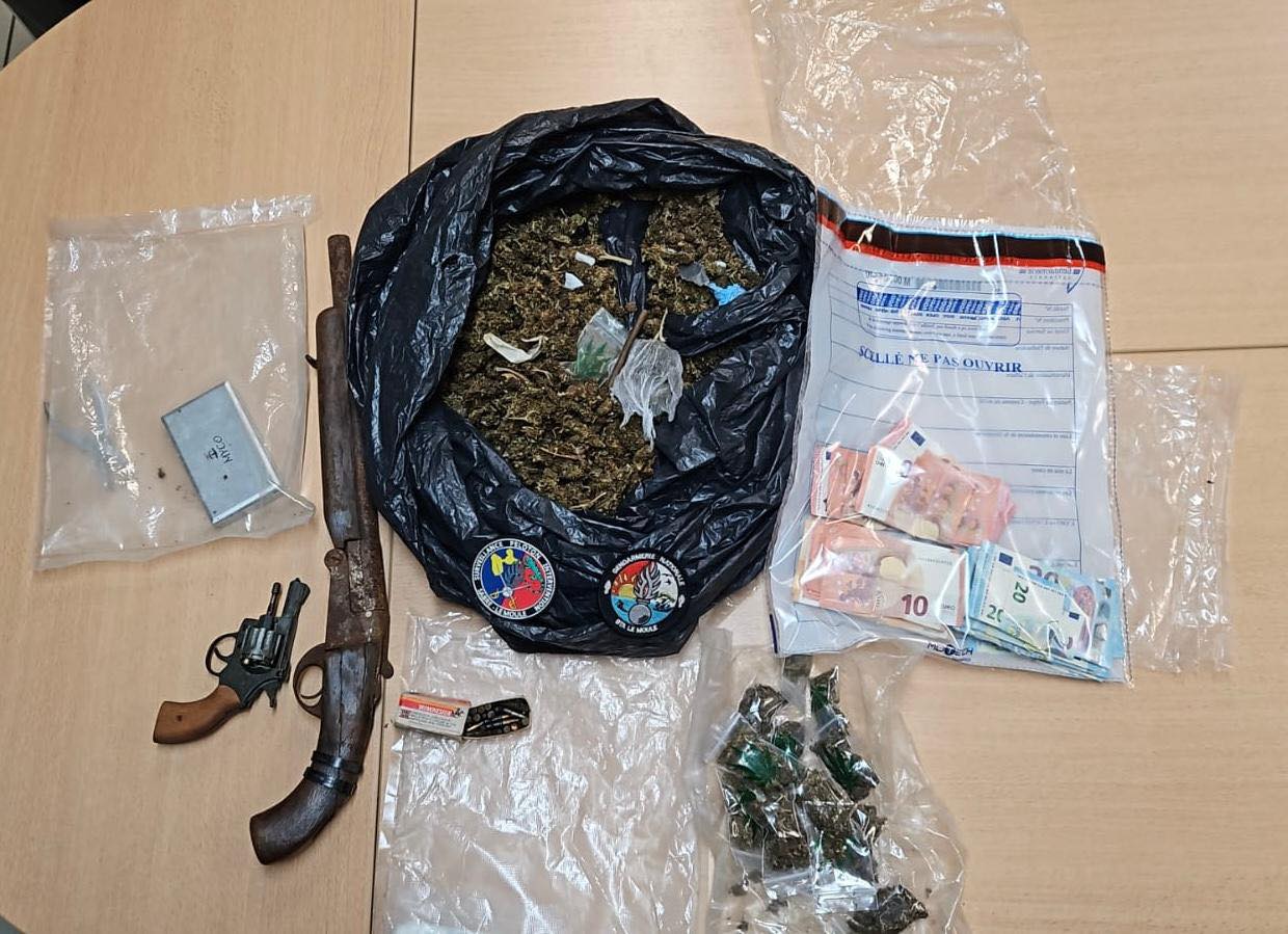 La perquisition au domicile du conducteur, un quinquagénaire, a permis de saisir près de 600 grammes de cannabis, un pistolet d’alarme avec ses cartouches, un canon scié ainsi que 2 030 euros en liquide.