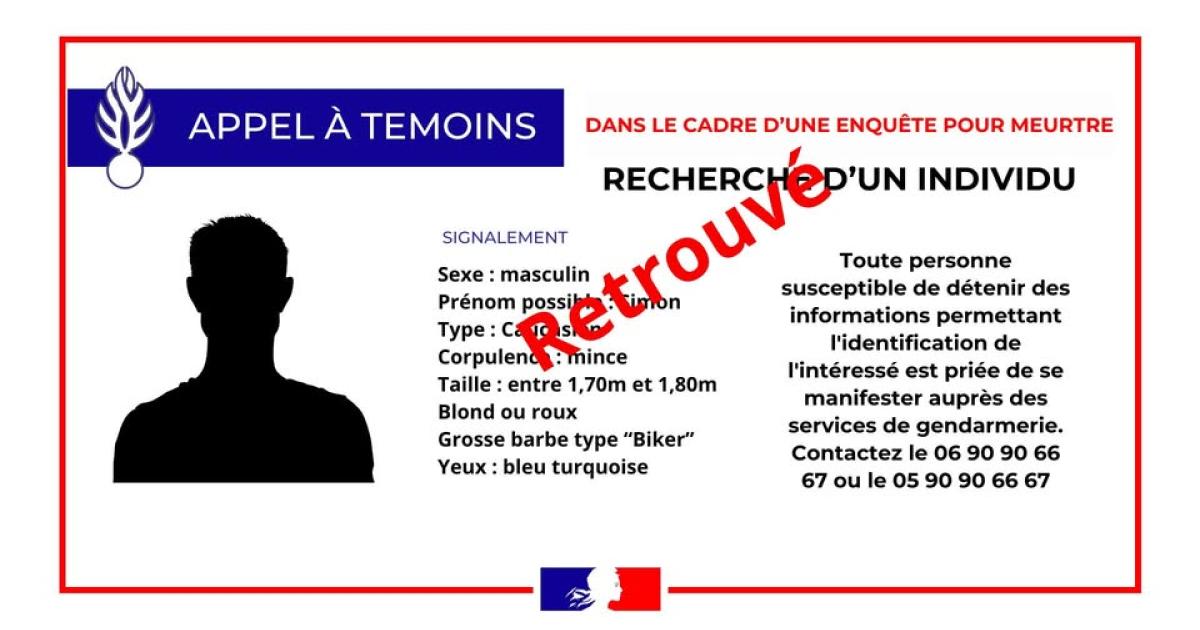 Ce mardi matin (29 avril), la gendarmerie avait publié un avis de recherche concernant cet homme, qui aurait été témoin d'une altercation sur une plage de Grand-Bourg entre le 15 et le 17 avril dernier.