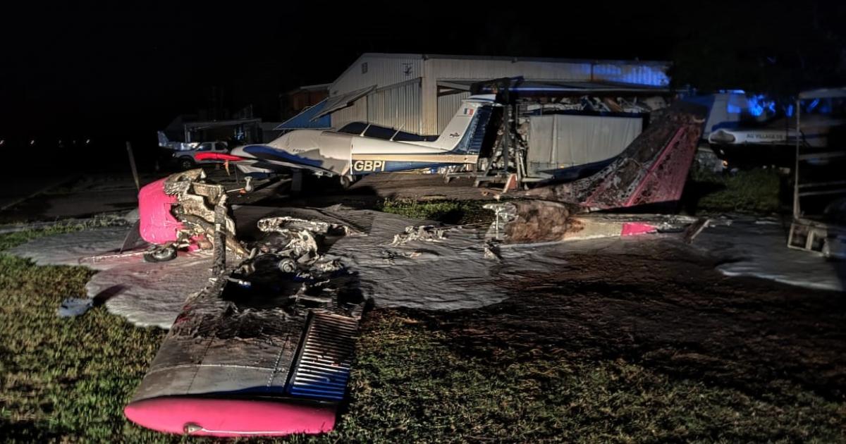 Un avion biplace et un réservoir d’environ 1000 litres de carburant ainsi que sa remorque ont été entièrement embrasés cette nuit vers 02h00 à l’aérodrome de Saint-François. Un autre avion a été un peu impacté au niveau d’une aile.
