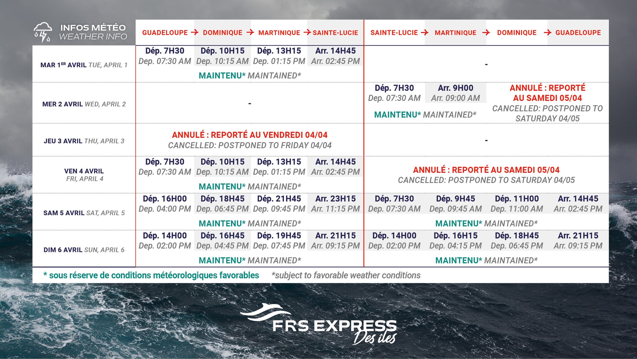 En raison de conditions de mer particulièrement fortes, la compagnie FRS Express des Îles informe sa clientèle de la modification du planning des rotations sur sa ligne internationale.