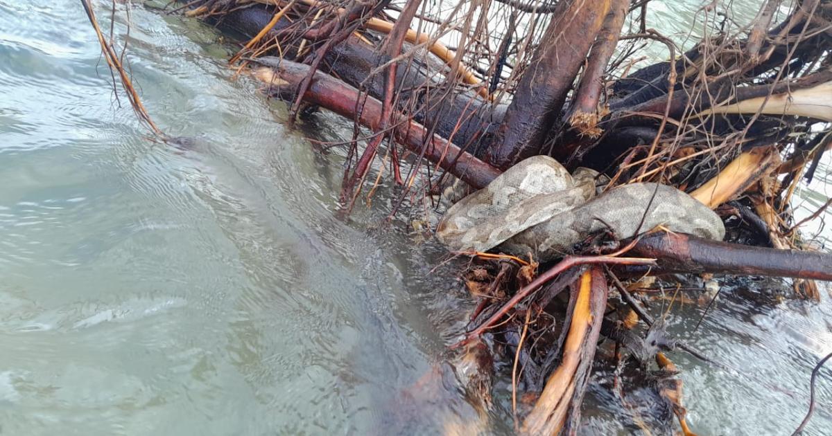 Sur la plage de Roseau à Capesterre-Belle-Eau, au niveau du dernier bassin au fond, des baigneurs ont alerté de la présence d’un serpent de type constrictor, emmêlé sur un tronc d’arbre dans l’eau.