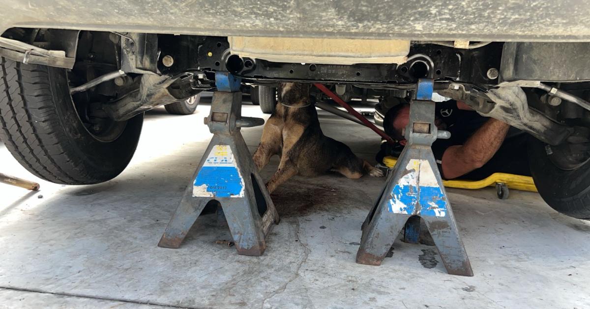 L’animal, un berger des cannes, avait la tête coincée dans le bloc moteur d’une fourgonnette de la société GUP, au garage de la concession.