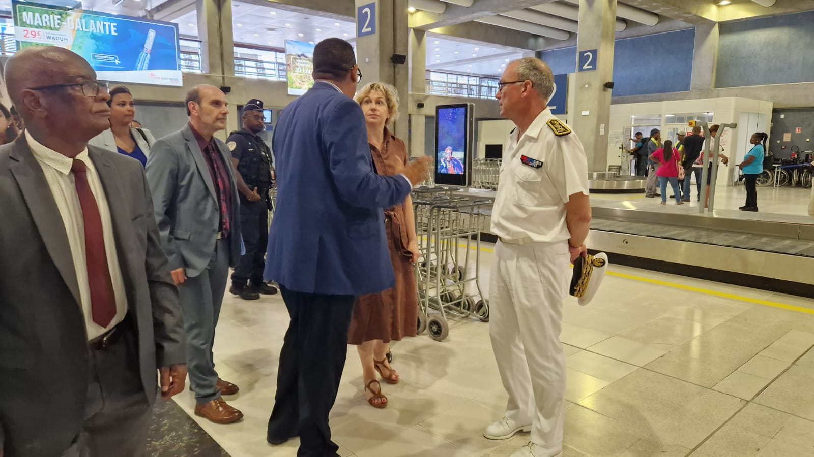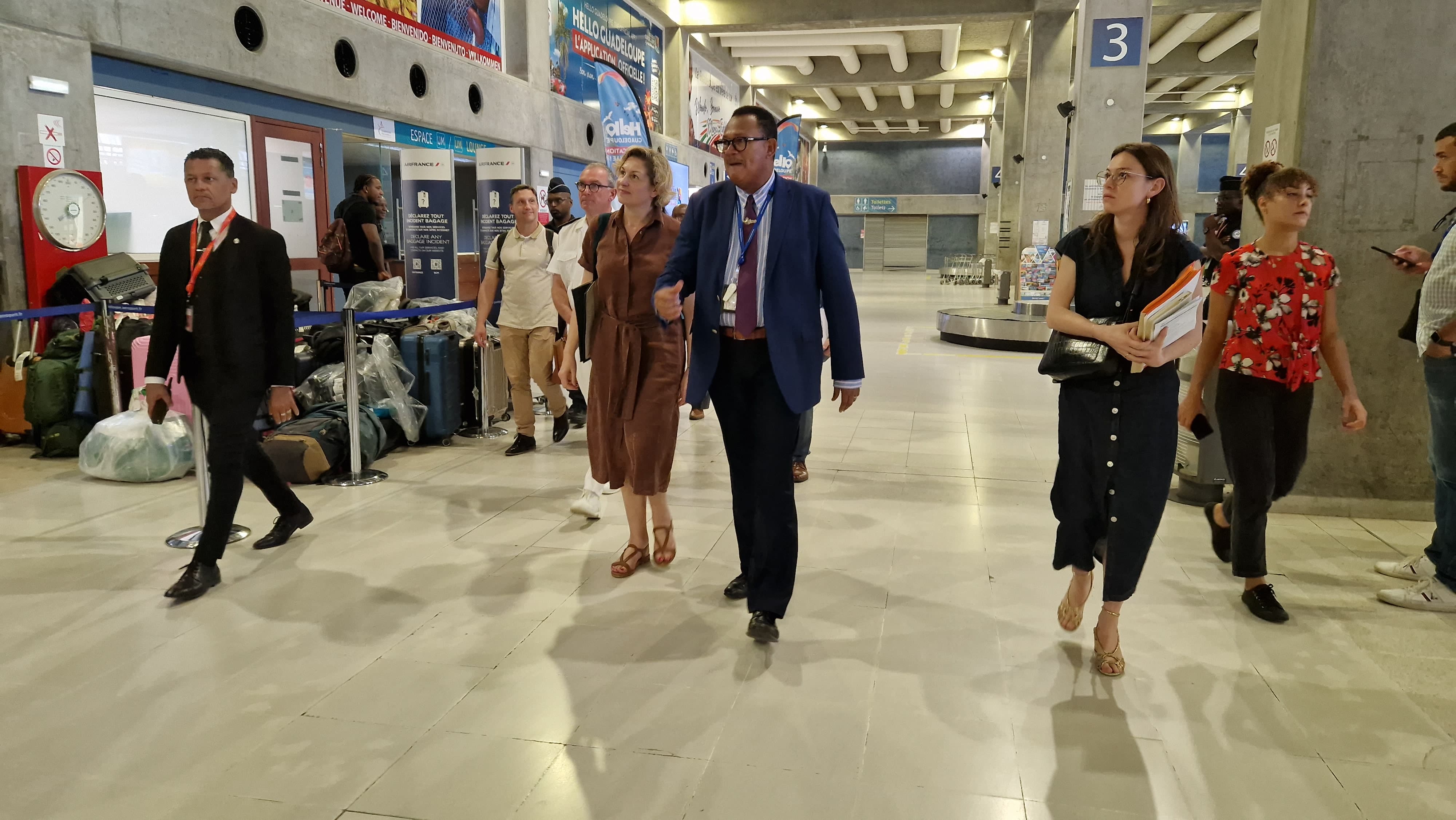 Première étape de son déplacement : l’aéroport Guadeloupe Maryse Condé.