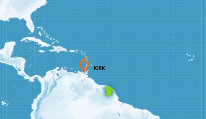 KIRK s'éloigne en mer des caraïbes en s'affaiblissant ce vendredi matin. Toutefois des pluies sont toujours susceptibles de nous intéresser. La Guadeloupe reste en vigilance orange pour "fortes pluies et orages". Vigilance jaune pour le vent et la mer.