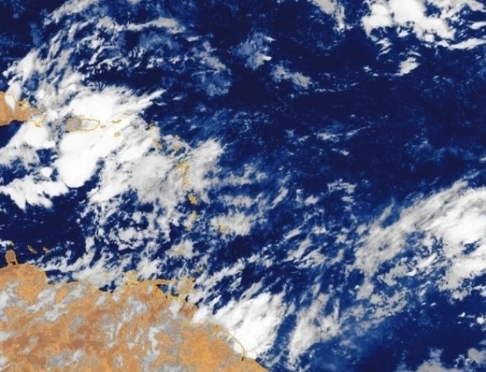 Un front nuageux est bien installé sur la moitié nord de l'Arc antillais, occasionnant localement de fortes précipitations et la présence d'orages accompagnés d'un vent turbulent.