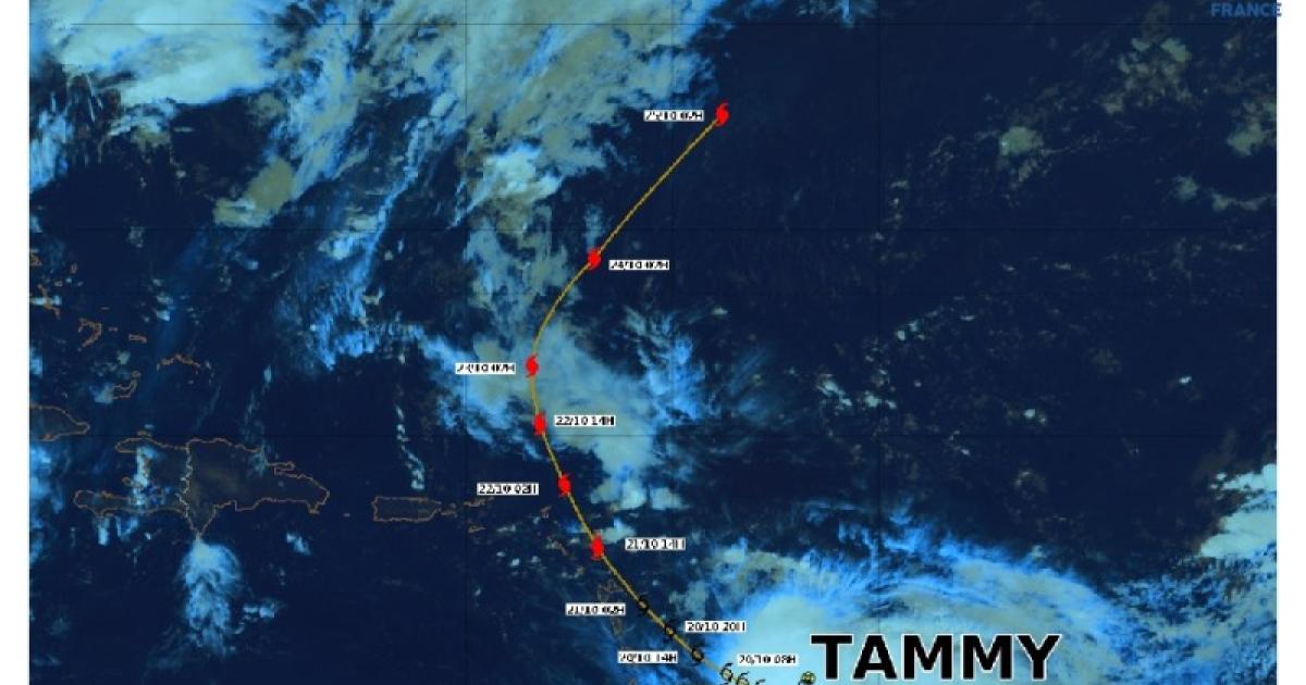 La tempête tropicale « Tammy » est devenu un un ouragan de catégorie 1. Selon les prévisions, le centre devait passer à proximité immédiate de la Guadeloupe (à l'Est) dans la matinée de samedi (21 octobre).