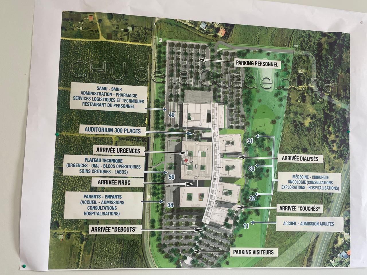 Le CHU actuel, futur ancien, a souffert d'un incendie, il y a quelques années il était trop compliqué et pas intéressant de le refaire. Il valait mieux partir sur un projet neuf. C'est ce qui a été fait. Ça a été long, certes. Ce qui a pu faire croire aux Guadeloupéennes et Guadeloupéens que ça ne se ferait jamais. Moi, je veux le dire, bravo aux architectes, bravo à la communauté médicale, bravo à tous ceux qui ont accompagné ce projet techniquement, financièrement, parce que le résultat, c'est un hôpital qui est très bien pensé, qui va donc, j'en suis sûr, très bien fonctionner, la qualité des soins et pour la qualité de l'accueil des Guadeloupéens et des Guadeloupéens.