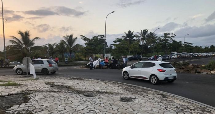 Le collectif de défense mobile est passé à l'action ce jeudi matin au lendemain de la destruction d'un restaurant sur la plage de Viard à Petit-Bourg. Le rond point de Montebelllo est en partie obstrué par des gravats, des pneus et autres détritus.