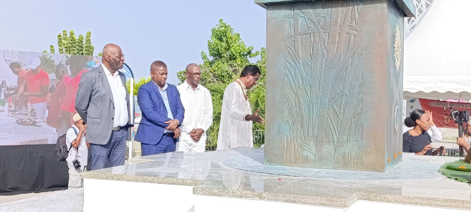 En présence de Guy Losbar, le président du Conseil départemental, Jean-Claude Nelson, le vice-président du Conseil régional, Harry Durimel, le maire de la Ville de Pointe-à-Pitre et Gérard Pétapermal, le Président du Comité du Premier jour, les différentes personnalités ont inauguré cette stèle qui servira dorénavant à mettre un peu davantage en avant ce pan de la culture guadeloupéenne.