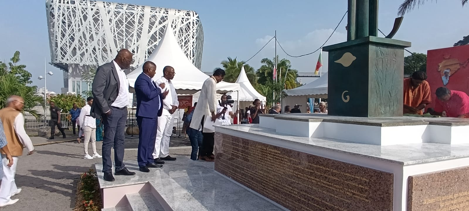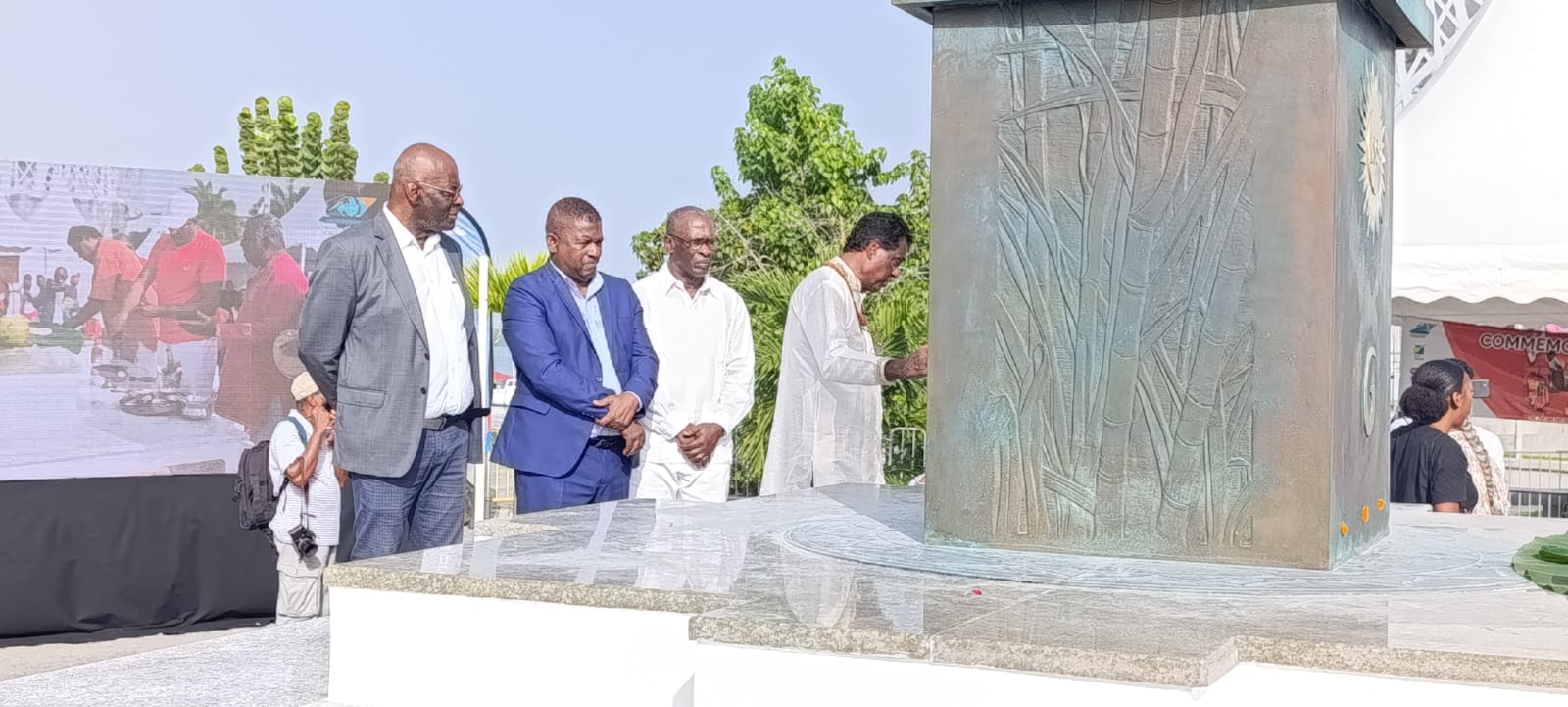 Pour célébrer les 170 ans de l’arrivée des premiers indiens dans l’archipel, une stèle a été dévoilée ce mardi matin (24 décembre) sur l’esplanade du Mémorial ACTe, à Pointe-à-Pitre.