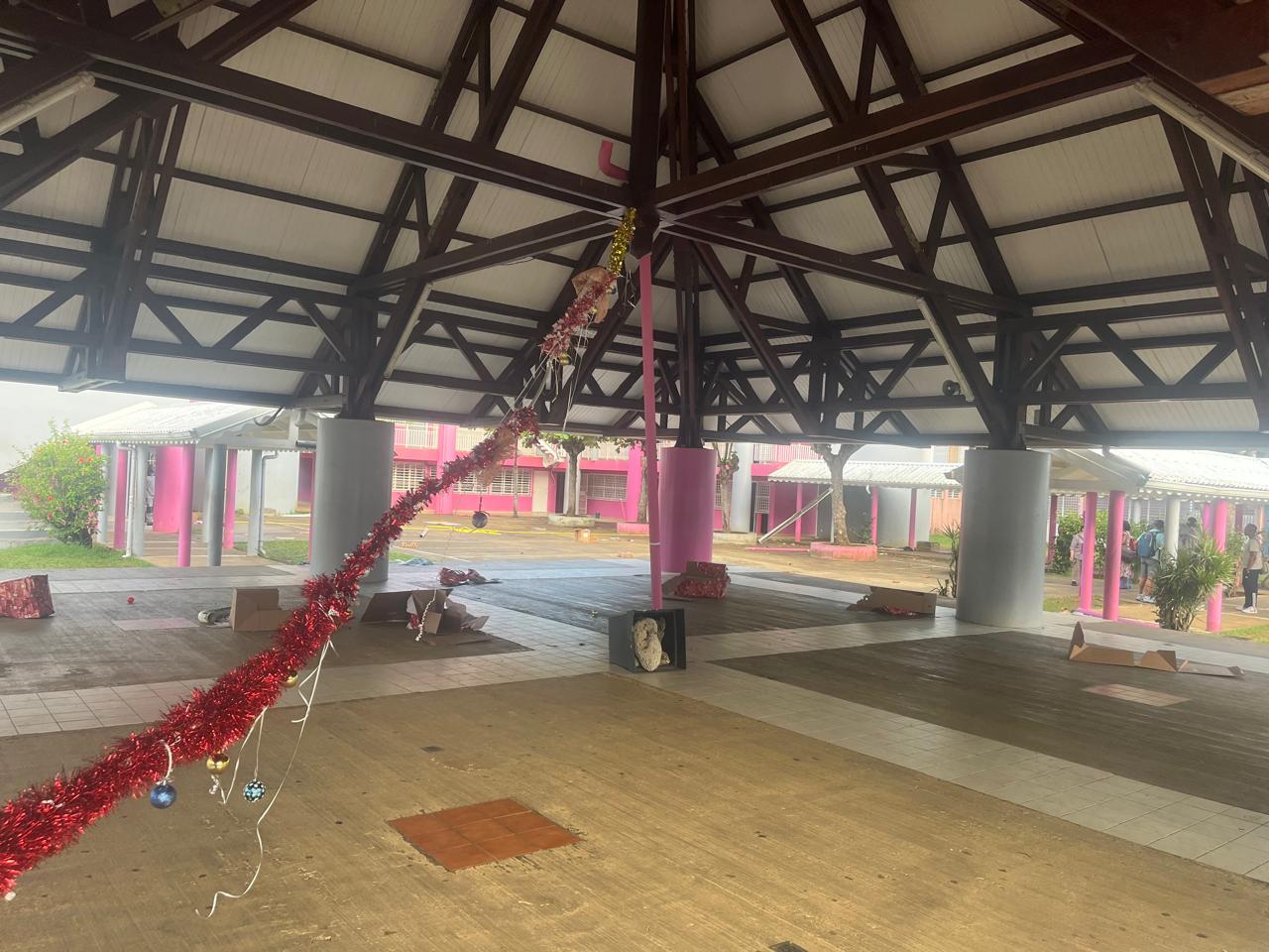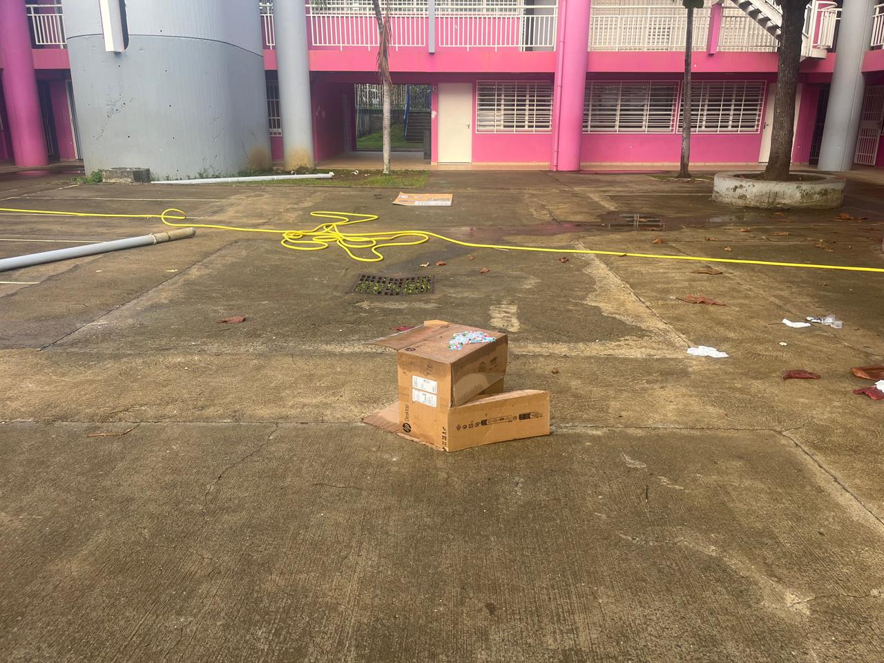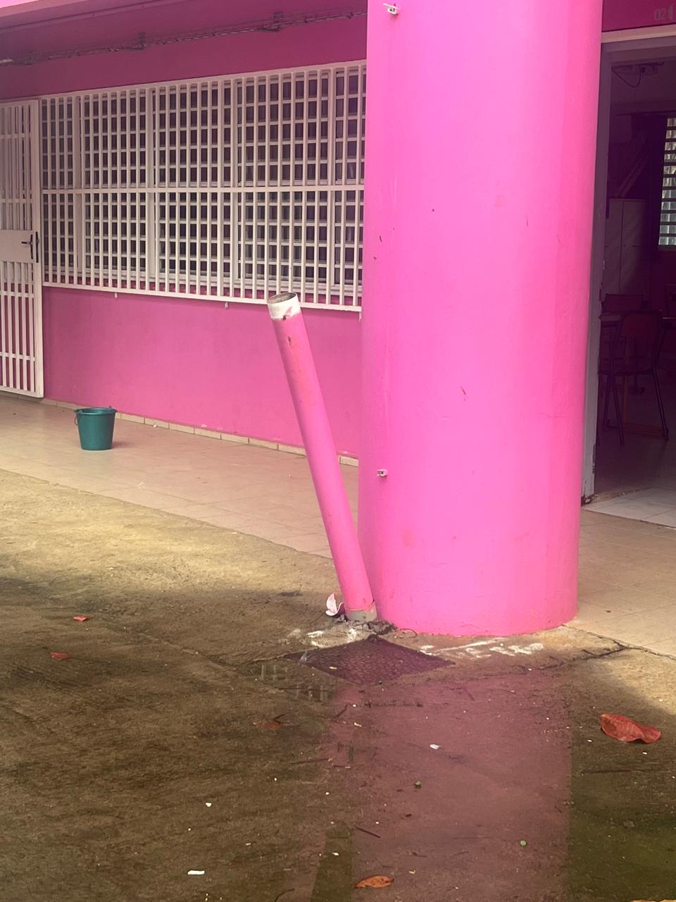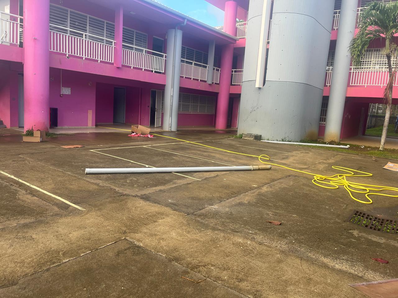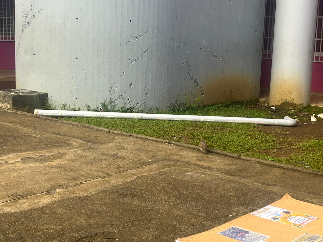 Des débris qui jonchent le sol, les gouttières arrachées ont été replacées à des endroits incongrus, des bris de verre issus de tentatives d’intrusion dans certains locaux. Le spectacle de la cour du collège de Grand-Camp fait peine à voir. Mais ce n’est pas une première, les enseignants ont déjà connu des intrusions similaires comme l’indique une enseignante.