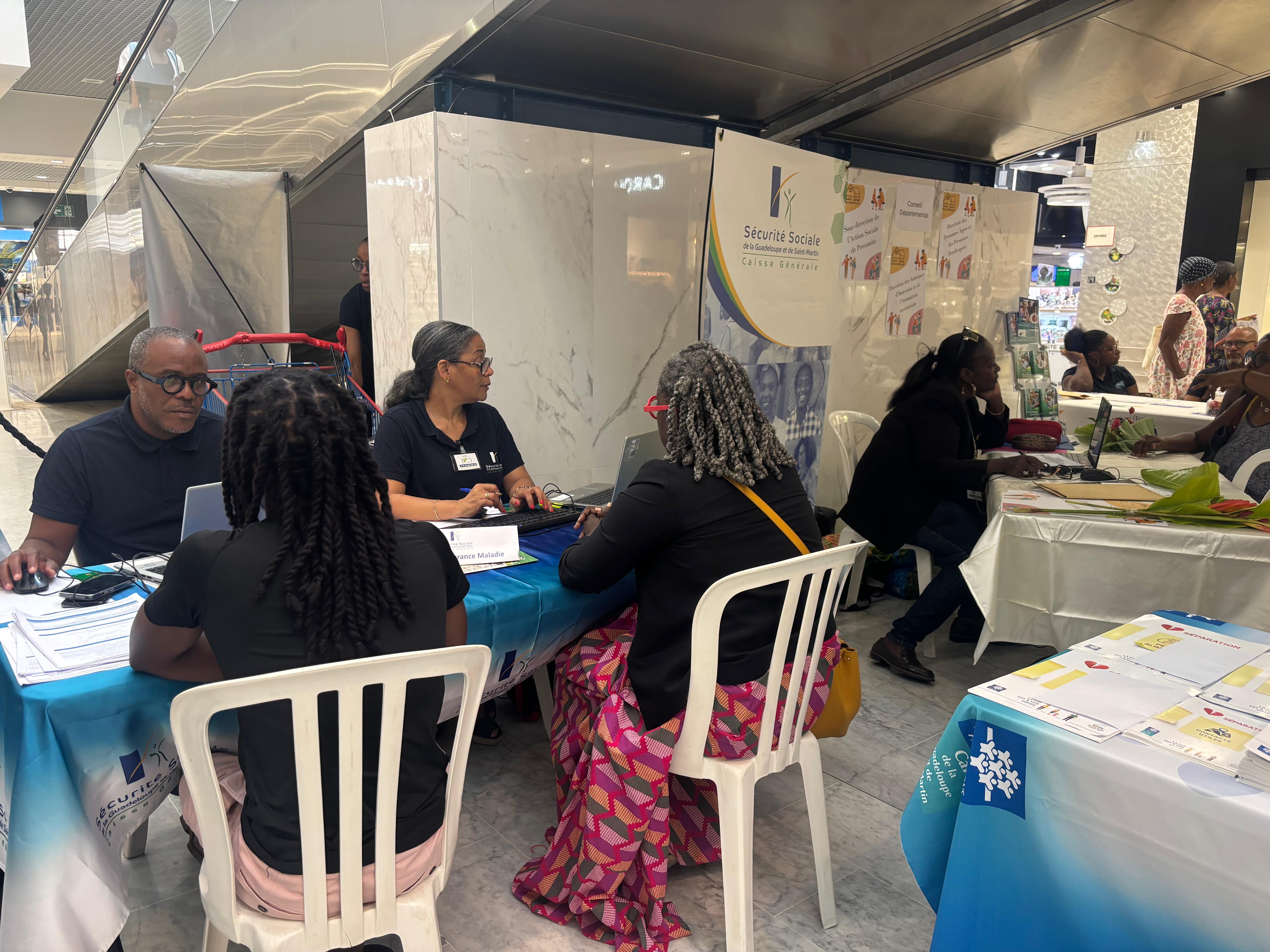 Tout l'objectif de ce programme, c'est de prendre en compte le fait que beaucoup de monde en Guadeloupe n'accède pas à ses droits. Des gens, par exemple, qui ont droit à l'allocation aux adultes handicapés, au RSA ou à d'autres dispositifs de soutien et qui ne le font pas valoir. Parfois parce que les services sont trop loin, parce que parfois les procédures sont trop complexes. Parce que parfois y accéder par internet n'est pas facile. Donc notre idée a été de rapprocher tous ces services des gens, au plus près, pour qu’on puisse aider chacun à obtenir ses droits et ses allocations. Et venir ici à Destreland, c’était pour nous très symbolique. Beaucoup de Guadeloupéens viennent faire leurs courses ici.