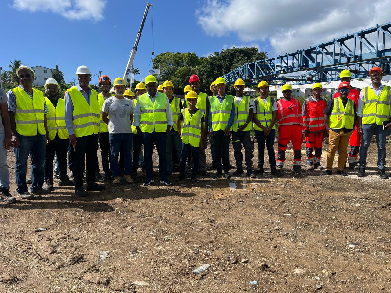 Aujourd'hui, on est sur la phase de lancement de la charpente métallique. On a commencé le chantier le 13 mars 2025. On est le 8 septembre, donc ça fait à peu près six mois qu'on est là et on est à une phase importante pour lancer l'ouvrage, c'est-à-dire lancer la charpente et la positionner sur ses appuis définitifs. La charpente fait 51 mètres de long. Elle pèse à peu près 250 tonnes et elle va être déplacée par halage, par poussage. Les câbles que vous avez pu observer vont permettre de tirer, de positionner la charpente sur ses appuis définitifs. Les difficultés particulières, malheureusement, en Guadeloupe, en ce moment, c'est le temps. On a eu quelques crues qui ont déplacé un peu le temps et les travaux. La pluie nous a empêché, par exemple, de souder, parce que c'est une charpente métallique qui est soudée sur place. Mais on est dans les temps qu’on s’était fixés.