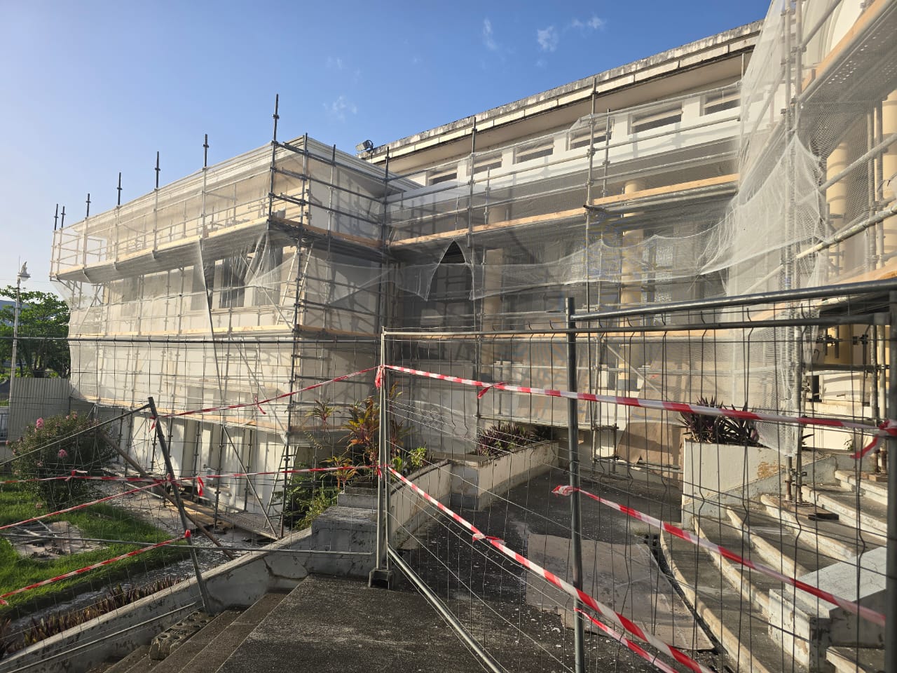Le Palais de Justice de Basse-Terre est en chantier. Toute la face extérieure de ce monument d'architecture qui porte la griffe d'Ali Tur, sera rénovée, puis, l'année prochaine, ce sera au tour des structures intérieures.