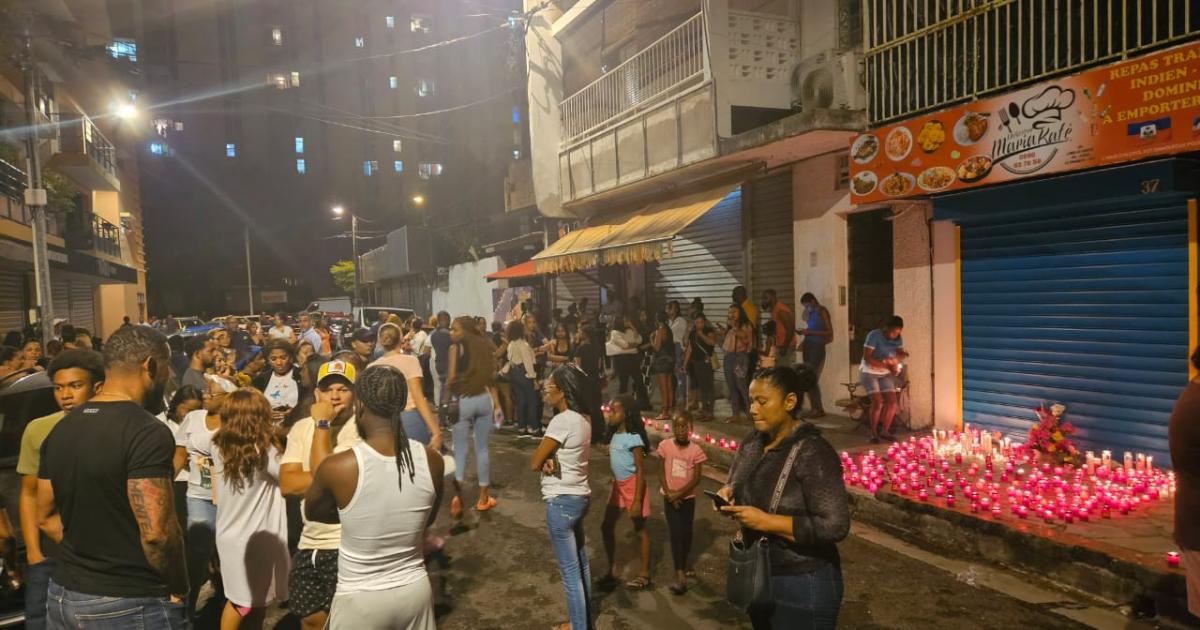 Samedi soir (16 mars) des membres de la communauté dominicaine, des riverains et des habitués du restaurant Maria Kafé se sont rassemblés rue Nasseau pour rendre hommage à la commerçante tuée la veille à Pointe-à-Pitre.
