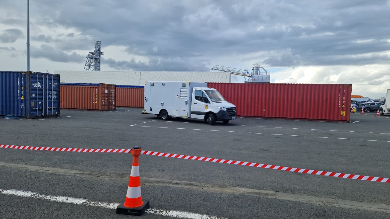 C'est un camion blanc discret, mais redoutable. Un scanner mobile de basse intensité capable de contrôler les conteneurs sans les ouvrir. Les anomalies sont repérées notamment avec l'appui de la déclaration des douanes selon le conseiller en radio protection.