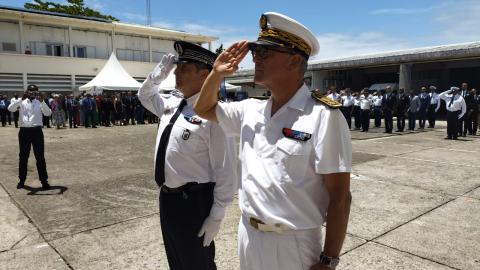 La cérémonie, présidée par Xavier Lefort, préfet de la région Guadeloupe, s’est tenue en présence de Louis Laugier, préfet et directeur général de la Police Nationale, ainsi que de Jean-Baptiste Dulion, contrôleur général et chef de la mission outremer à la Direction Générale.