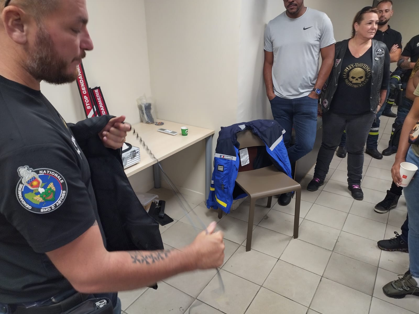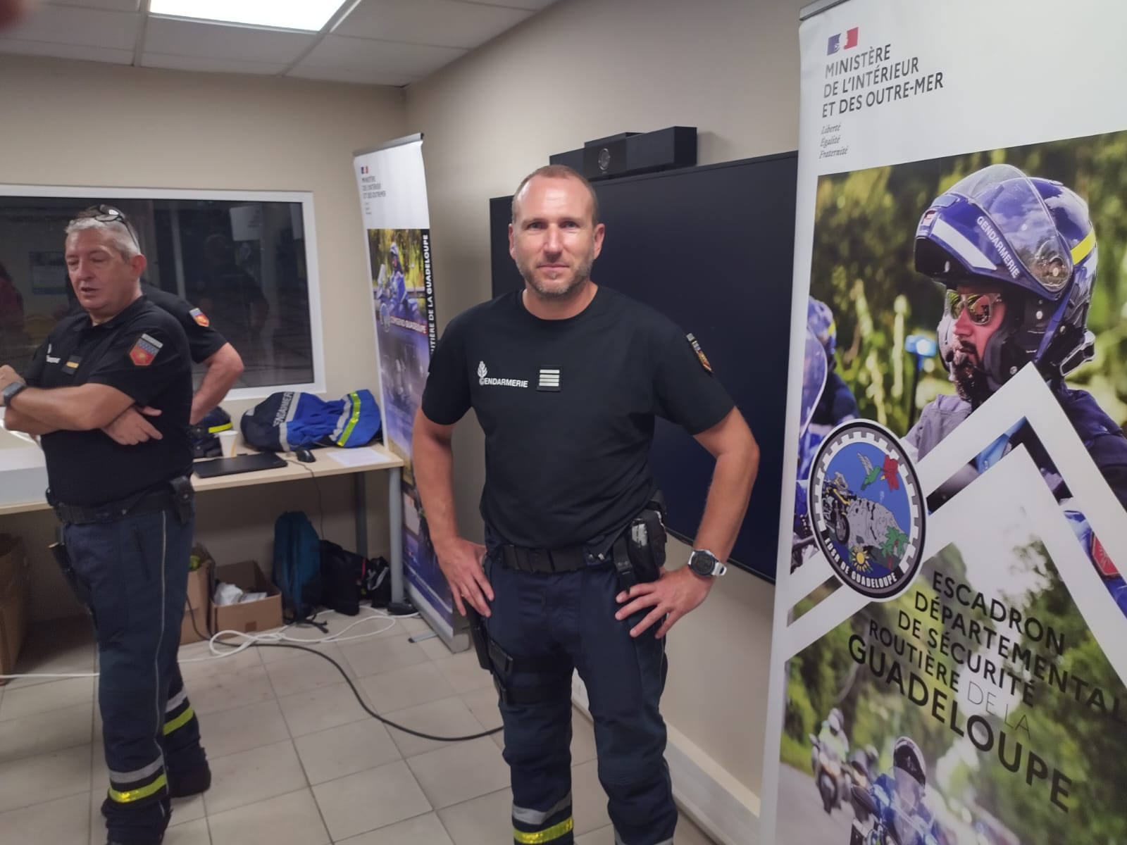 Tout simplement parce qu'on part du constat que parmi les morts sur la route, malheureusement trop nombreux en Guadeloupe, une part importante concentre les conducteurs de deux roues. Donc, on a eu l'idée, en tant que motards nous-mêmes, de mettre en place des journées à destination des conducteurs pour pouvoir leur donner des conseils de sécurité, pour se déplacer sur la route. Cette année, le format était un peu différent. Il a été élargi. L'année dernière, on faisait ça sur une demi-journée. Là, la formule évolue. On fait ça désormais sur une journée complète avec une partie théorique le matin : présentation de la trajectoire de sécurité, de différents équipements de sécurité, les nouvelles réglementations, notamment sur la circulation inter-files, une démonstration de déclenchement de gilet airbag et surtout, on a inclus une formation secourisme, c'est-à-dire qu'on a un atelier où tout le monde peut avoir des informations. Qu'est-ce que je fais si je suis amené à intervenir ou à tomber sur un accident avec un motard ? Ou qu'est-ce qu'il ne faut pas faire ? Quelles sont les bonnes actions ou les bonnes réactions à avoir.