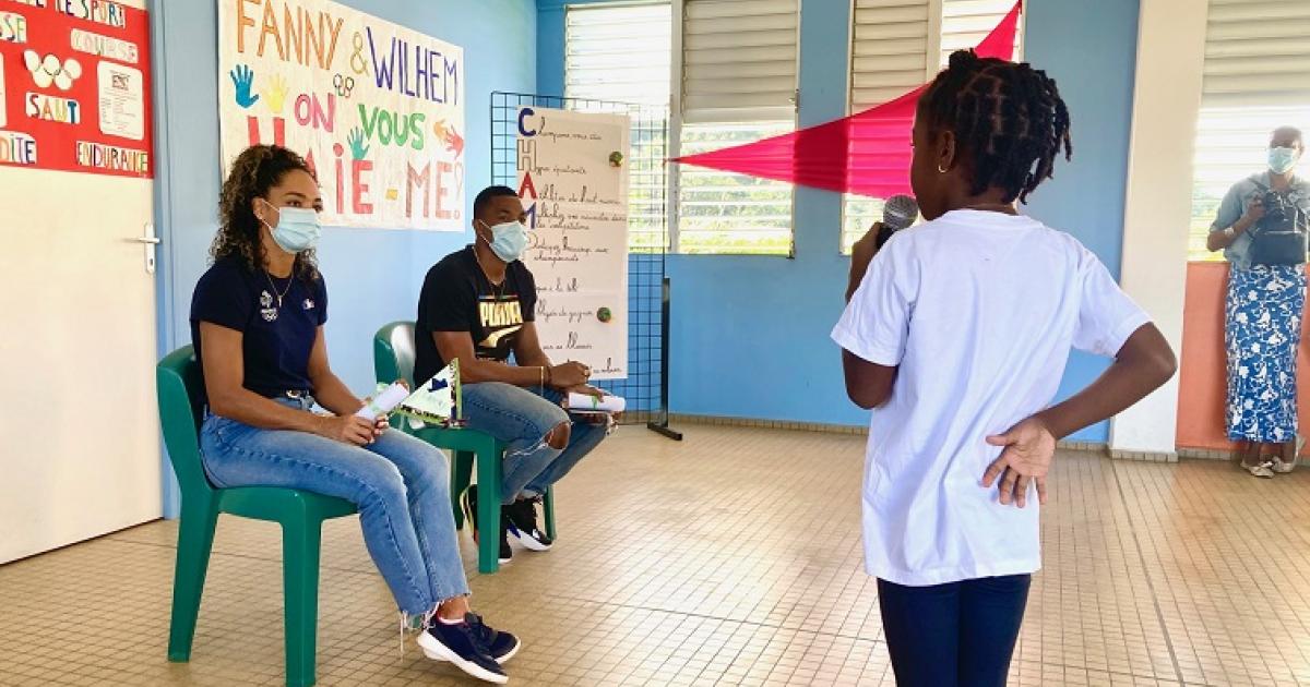 Fanny Quenot et Wilhem Belocian à la rencontre d'élèves guadeloupéens