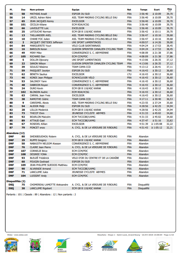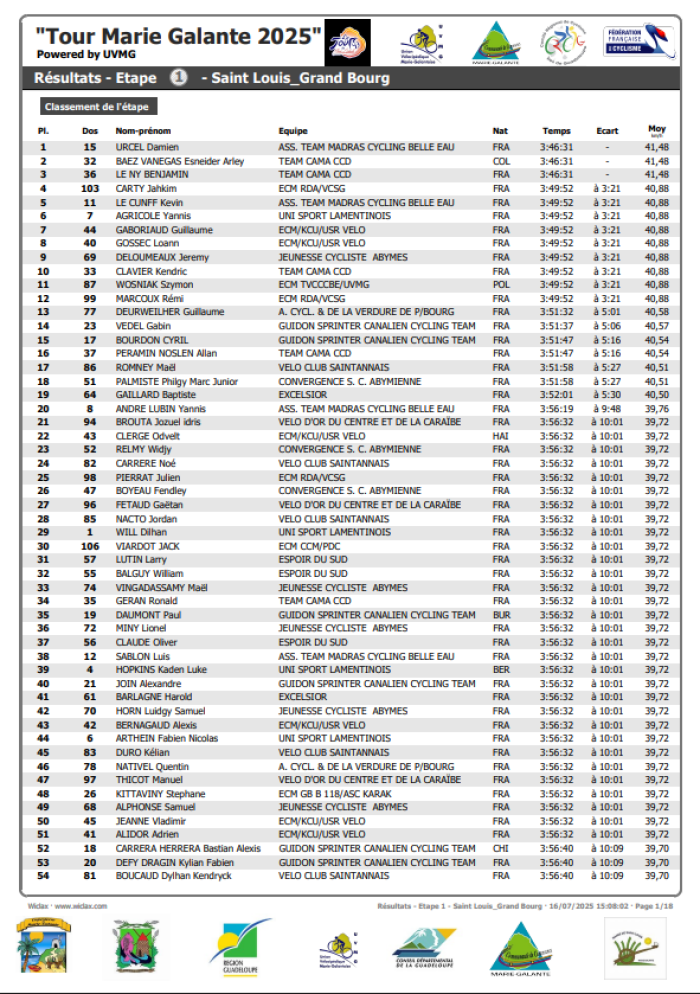 L’étape de ce jeudi (17 juillet) relie Grand-Bourg à Capesterre. Elle est longue de 157.700 et enchaîne les difficultés. Il faudra résister. La Team Cama CCD va tenter de défendre le maillot de leader de Benjamin Le Ny.