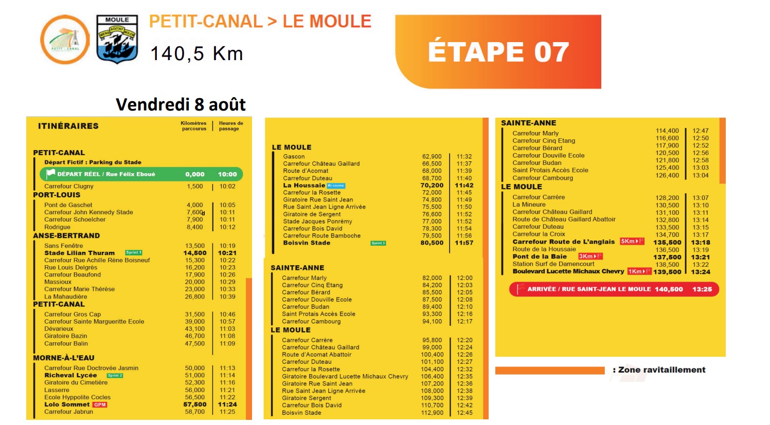 C'est au tour du Moule d'accueillir l'arrivée du tour. Mais le peloton part de Petit-Canal en direction de Port Louis puis d'Anse Bertrand avant de revenir à Petit Canal.