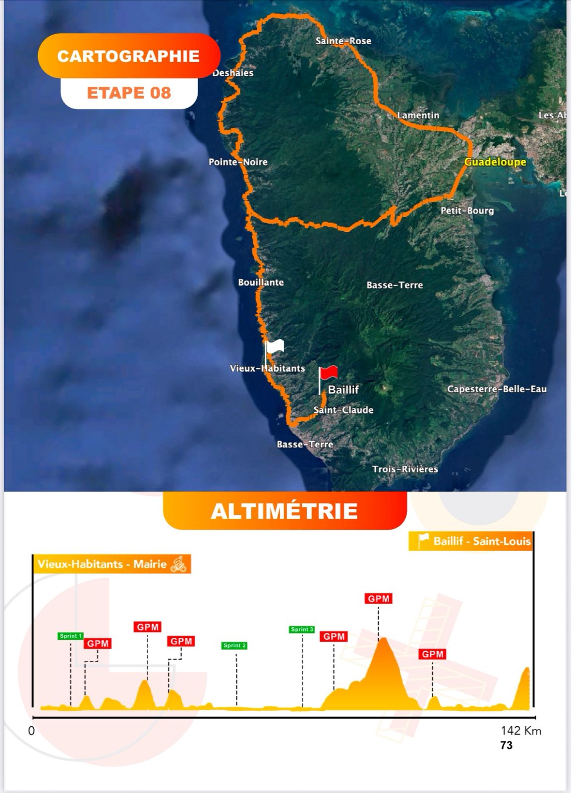 L'avant-dernière étape de ce tour cycliste de la Guadeloupe 2025 peut jouer les juges de paix. Les Mamelles sont à nouveau au programme de ces 142 kilomètres de course (samedi 9 août 2025).
