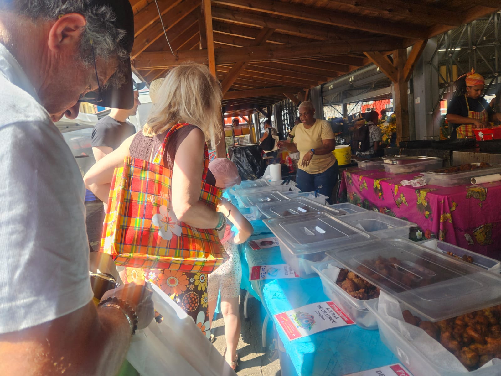 On fait des accras avec quasiment tous les fruits de mer : langouste, le lambi, le chatrou; les légumes : les courgettes, les aubergines, à l'haricot vert ou poulet. On peut vraiment faire en sorte qu'il y ait un large choix. On a quand même réussi en 24 ans à limiter les critiques parce que les gens veulent toujours que l'accra ressemble à celui que fait maman. Ce n'est pas possible. On a une clientèle mixte, locale et de touristes.
