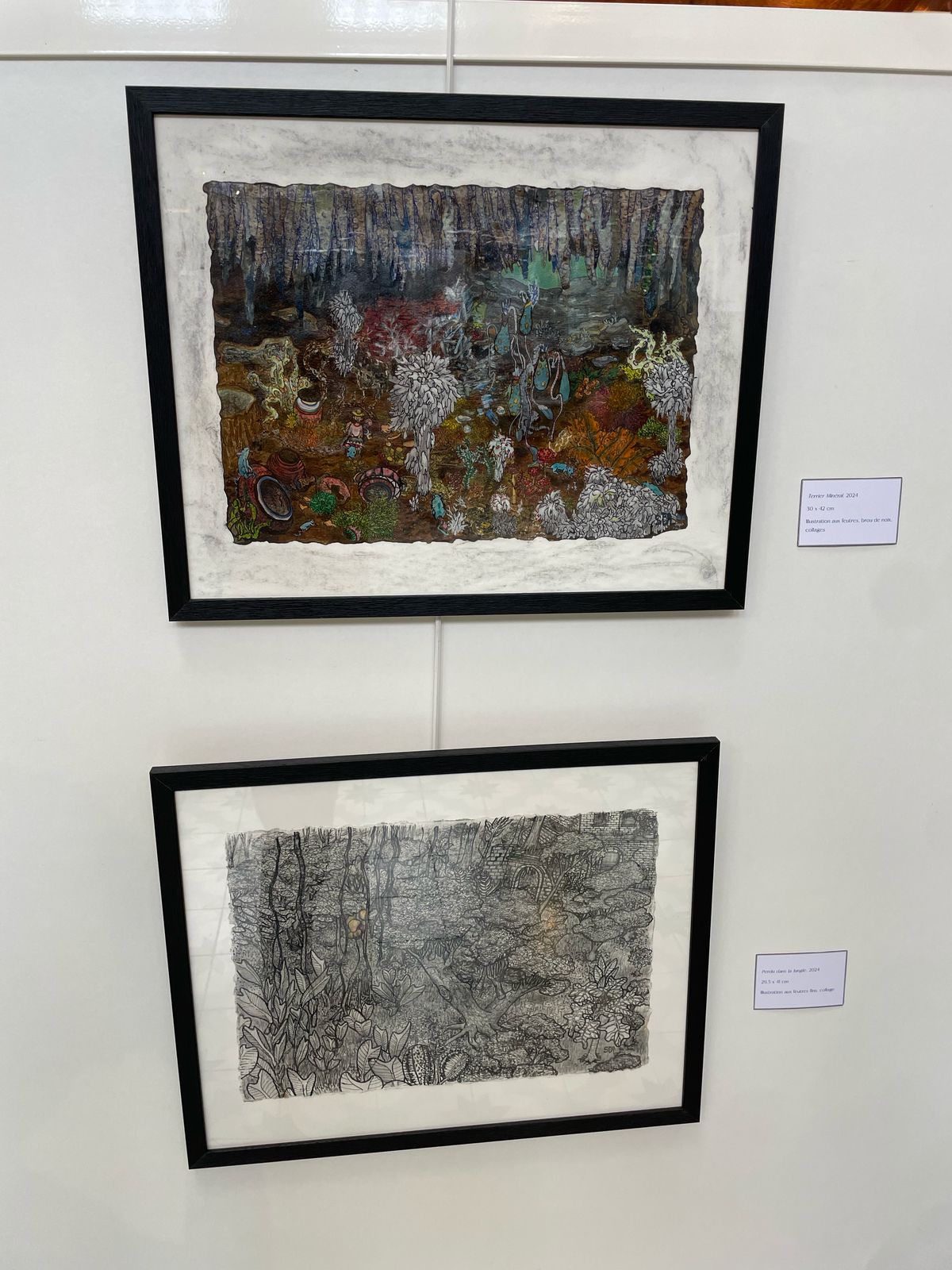 Je suis artiste polyvalente, c'est-à-dire que je touche un peu à tout, plasticienne avant tout. En dehors de cela, je fabrique aussi des meubles. En priorité, les techniques que j'utilise le plus, c'est notamment la langue de Chine et aussi le feutre à alcool pour le compléter. Et du stabilo aussi, parce que mine de rien, c'est très résistant au temps. Il m'arrive également d'associer de l'acrylique avec. Je change de matériau en fonction de leurs possibilités et de leurs limites.