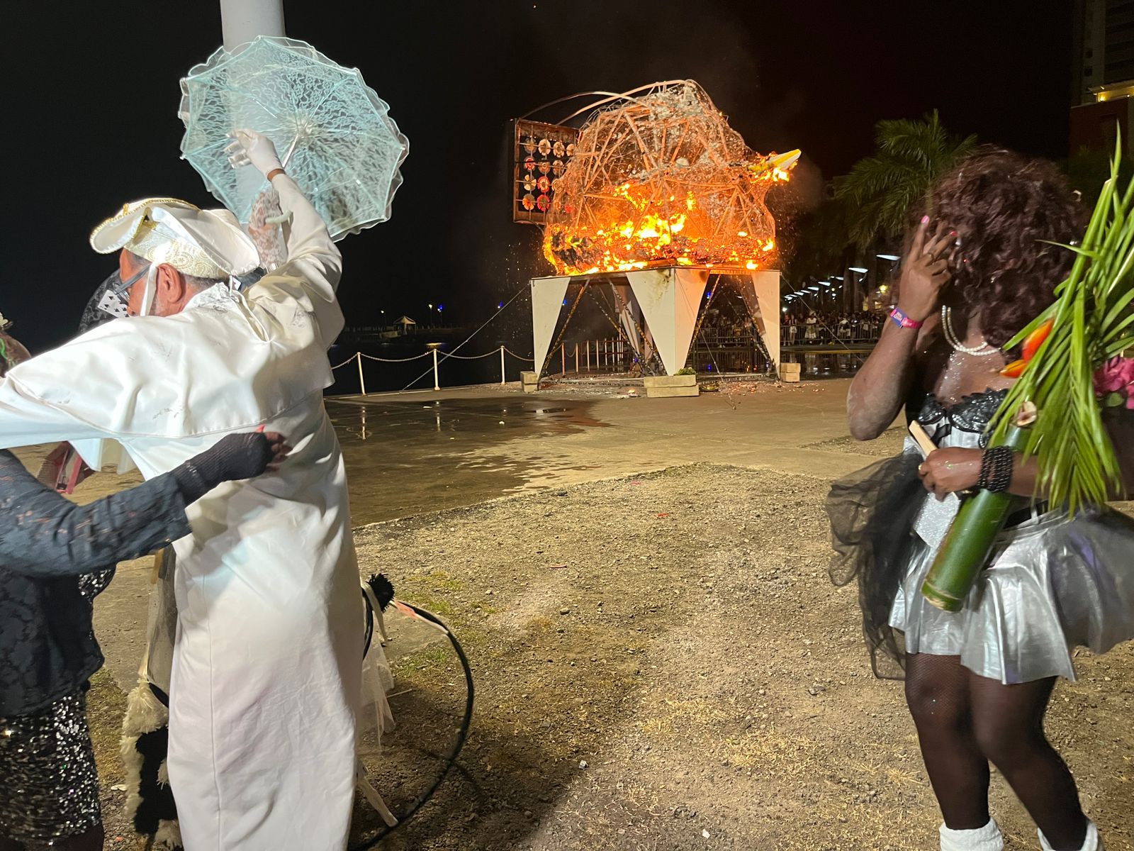 Vaval consumé par les flammes sur le front de mer de Fort-de-France. La tradition a été respectée ce mercredi des cendres. Le carnaval 2026, particulièrement chaud, s'achève donc avec la mort du roi de la fête.