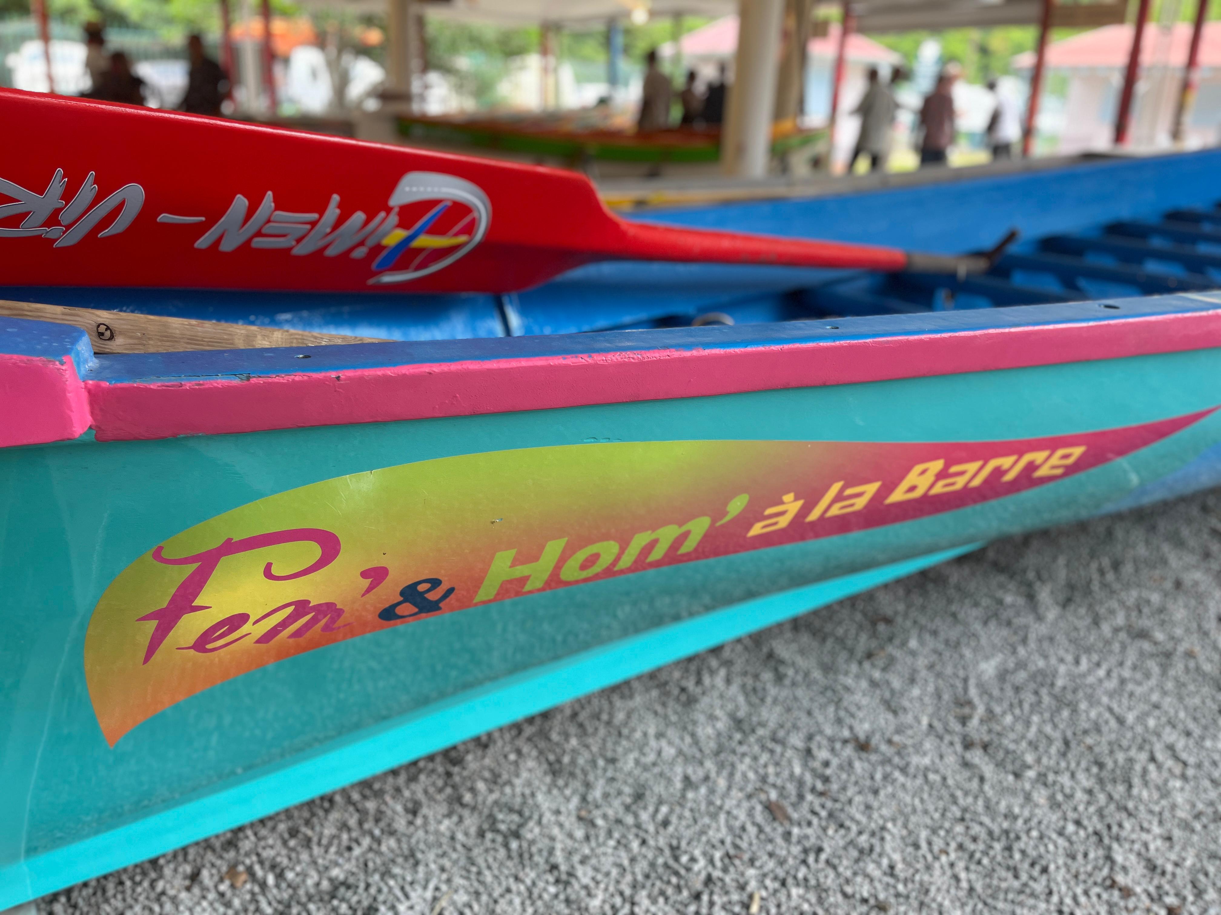 Cinq embarcations traditionnelles des deux territoires y sont représentées : le kanawa, la pirogue sénégalaise, le gommier, l’aviron et la yole ronde, symboles de traversée et de voyage.