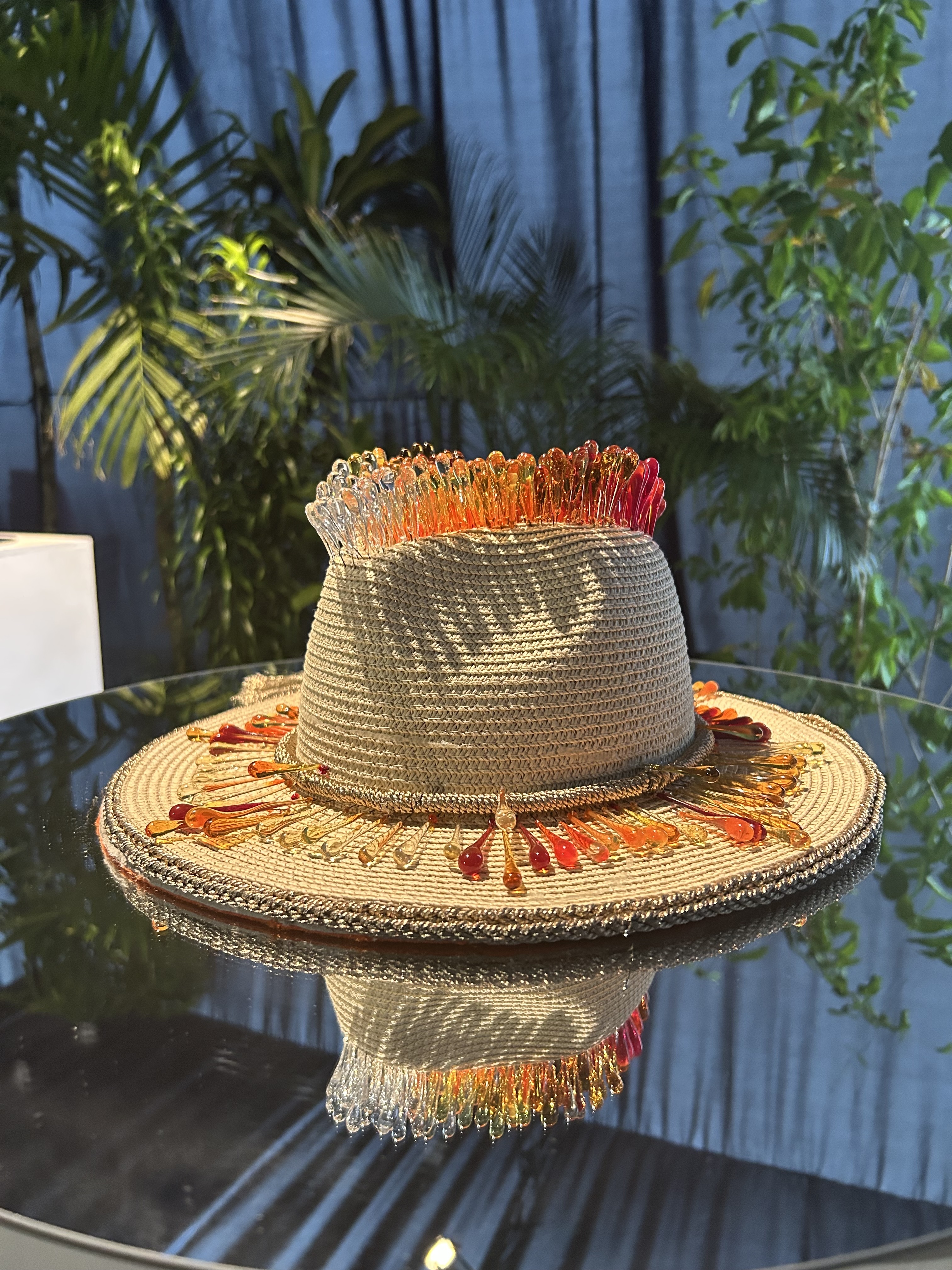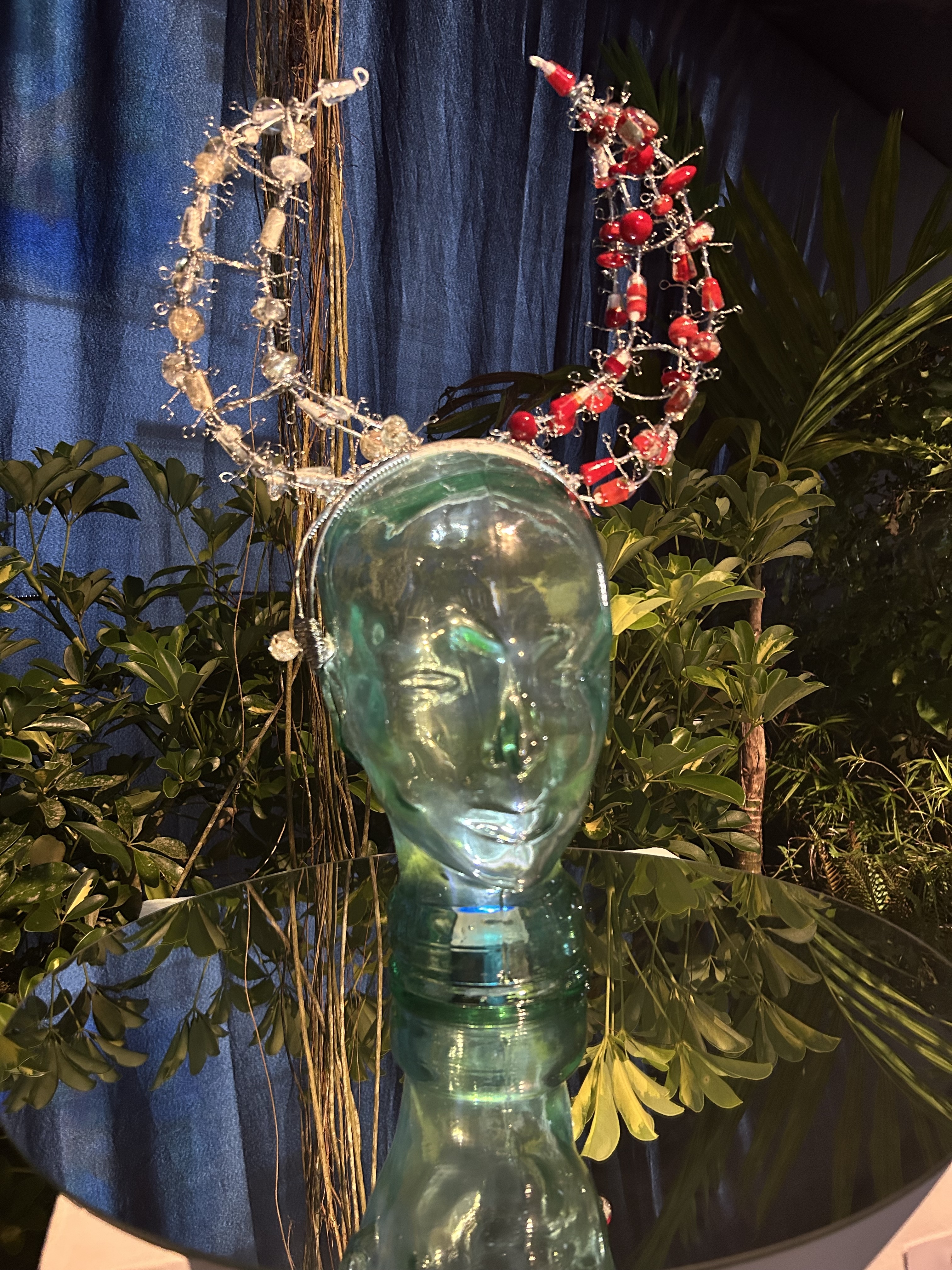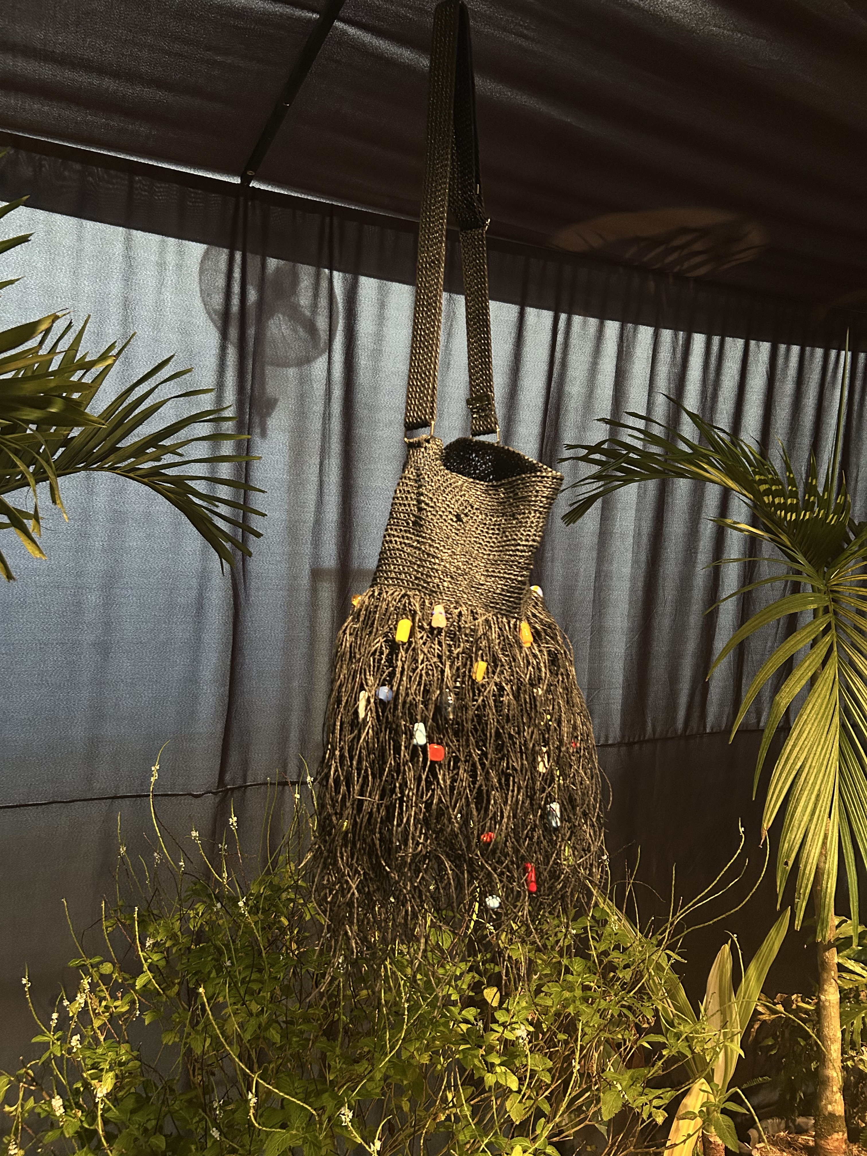 Les pièces ont été mises en valeur dans une salle plongée dans l’obscurité, entourée de plantes tropicales et baignée de musique caribéenne. Des miroirs placés autour des créations ont renforcé les jeux de lumière, offrant aux visiteurs une expérience sensorielle unique.