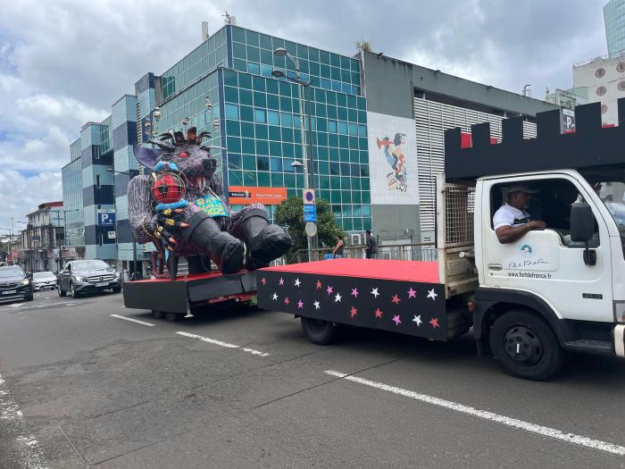 Le Roi Vaval 2025, un gros rat, fait sa première sortie dans les rues de Fort-de-France