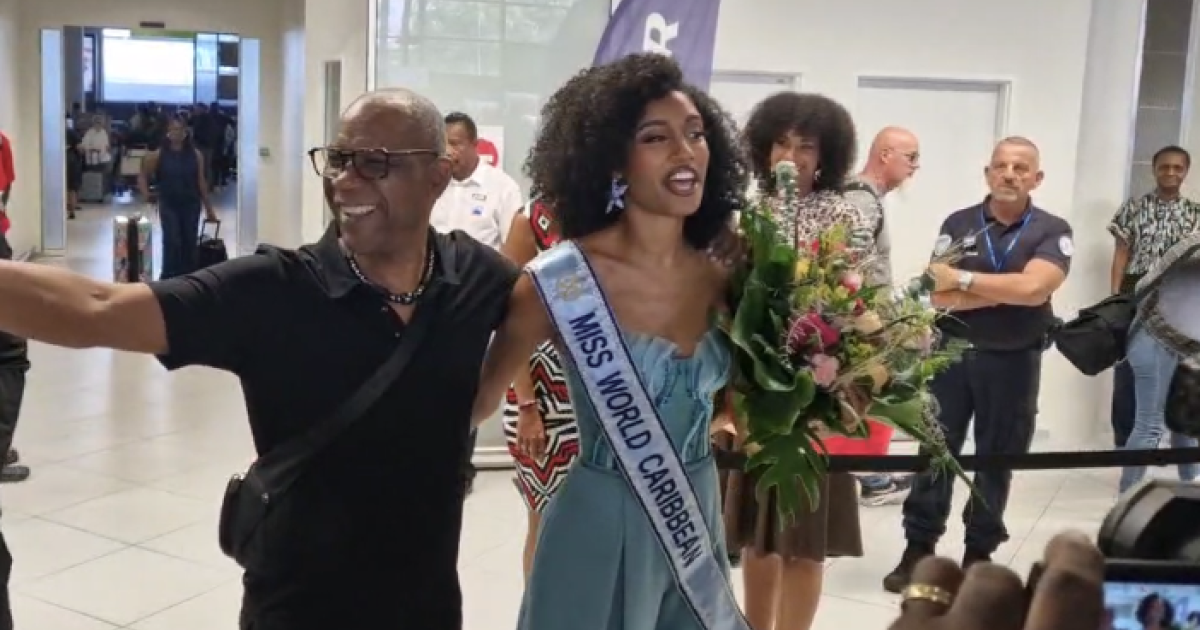 De retour de l’élection Miss World 2025 en Inde, où elle s’est classée 4ᵉ au niveau mondial et a décroché le titre de Miss World Caribbean et Amériques, la jeune Martiniquaise de 27 ans a atterri à 17 heures à l’aéroport Martinique Aimé Césaire.